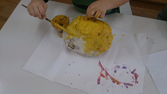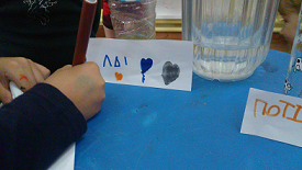 Στη συνέχεια βάζουμε τα παιδιά να ανακατέψουν με το κουτάλι όσο πιο πολύ μπορούν. Παρατηρούμε τελικά πως ότι και να γίνει πάντα το λάδι επιπλέει!