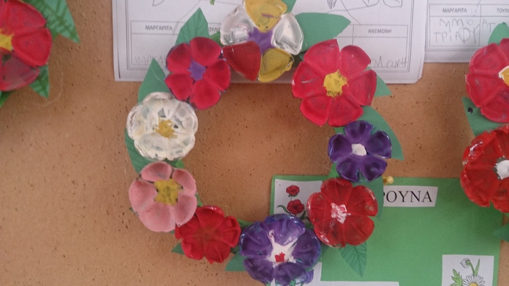 Φέτος τα στεφάνια μας τα κάναμε από εφημερίδες και τα λουλούδια από πάτους πλαστικών μπουκαλιών!
