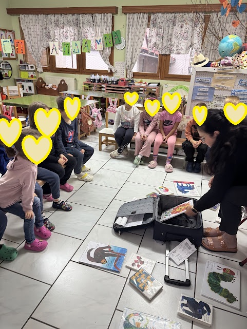 Οι μαθητές μας στο τέλος κάθε βδομάδας δανείζονται από ένα βιβλίο από τη δανειστική βιβλιοθήκη μας . Η οποία λειτουργεί σε άλλο χώρο του σχολείου . Όπου τα παιδιά σε μια όμορφα διαμορφωμένη γωνιά έχουν την δυνατότητα να βλέπουν το εξώφυλλο των βιβλίων που είναι διαθέσιμα για δανεισμό , αλλά και να καθίσουν ή να ξαπλώσουν ξεφυλλίζοντας όποιο βιβλίο θέλουν .