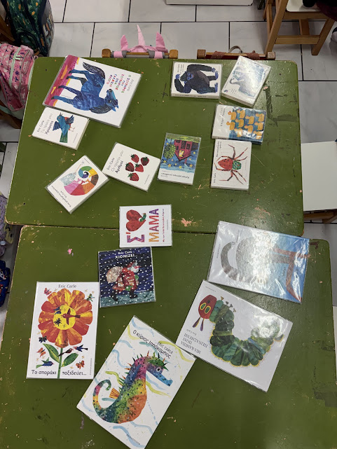 Την Παρασκευή σε κάθε βιβλίο που δανείστηκαν προσπαθήσαμε να βάλουμε και από ένα σχετικό παιχνίδι. Σε κάποια το παιχνίδι ήταν μια γαντόκουκλα του ήρωα του παραμυθιού , σε κάποια ένα παζλ , μια αντιστοίχιση , ένας χρωματισμός . παιχνίδι μνήμης και ότι μπορέσαμε να σκεφτούμε για να κάνουμε ακόμα πιο ενδιαφέρον την ανάγνωση του βιβλίου . Τώρα περιμένουμε τις εντυπώσεις τους !!!