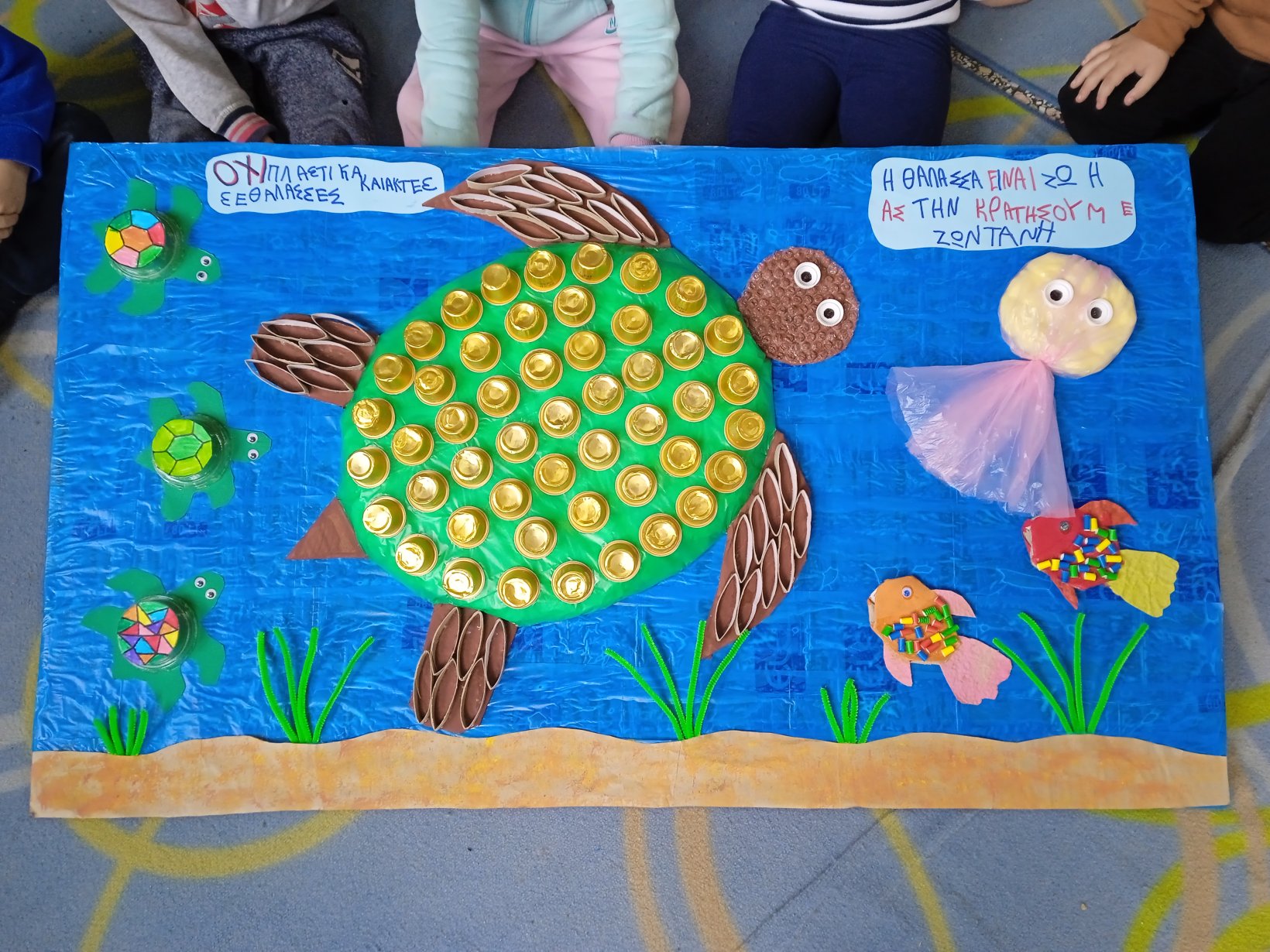 Το σχολείο μας συμμετέχει στο διαγωνισμό με αφίσα που δημιούργησαν τα παιδιά. Έβαψαν το βυθό με τέμπερες και τα πλάσματα του βυθού με μαρκαδόρους. Δείτε εικόνες από την προετοιμασία της αφίσας.