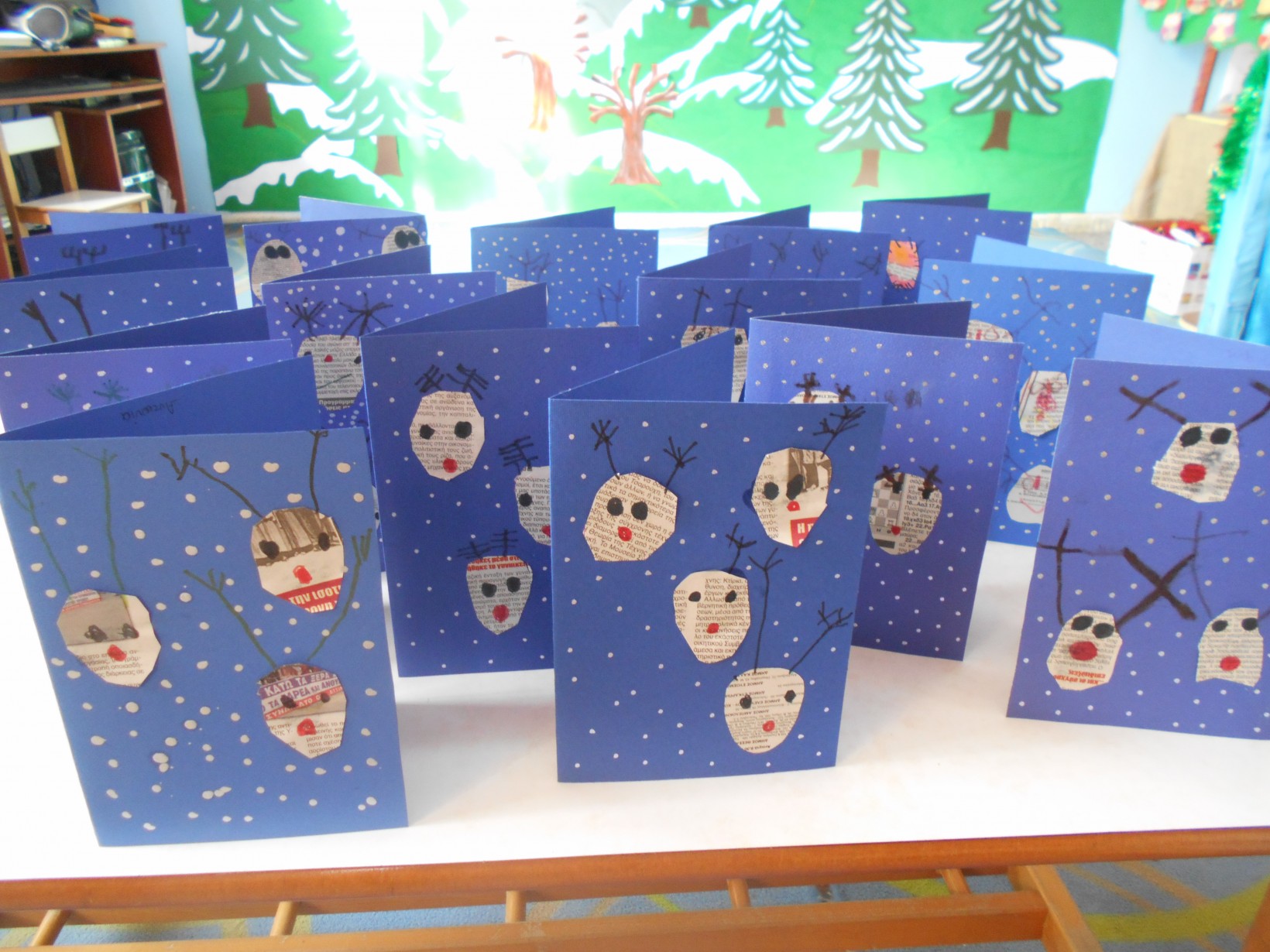 Η πρόσκληση για τη γιορτή ήταν τάρανδοι από εφημερίδα. Και η κάρτα μας είχε θέμα τον Άγιο Βασίλη.