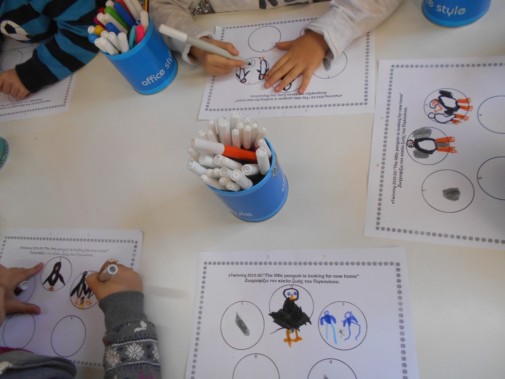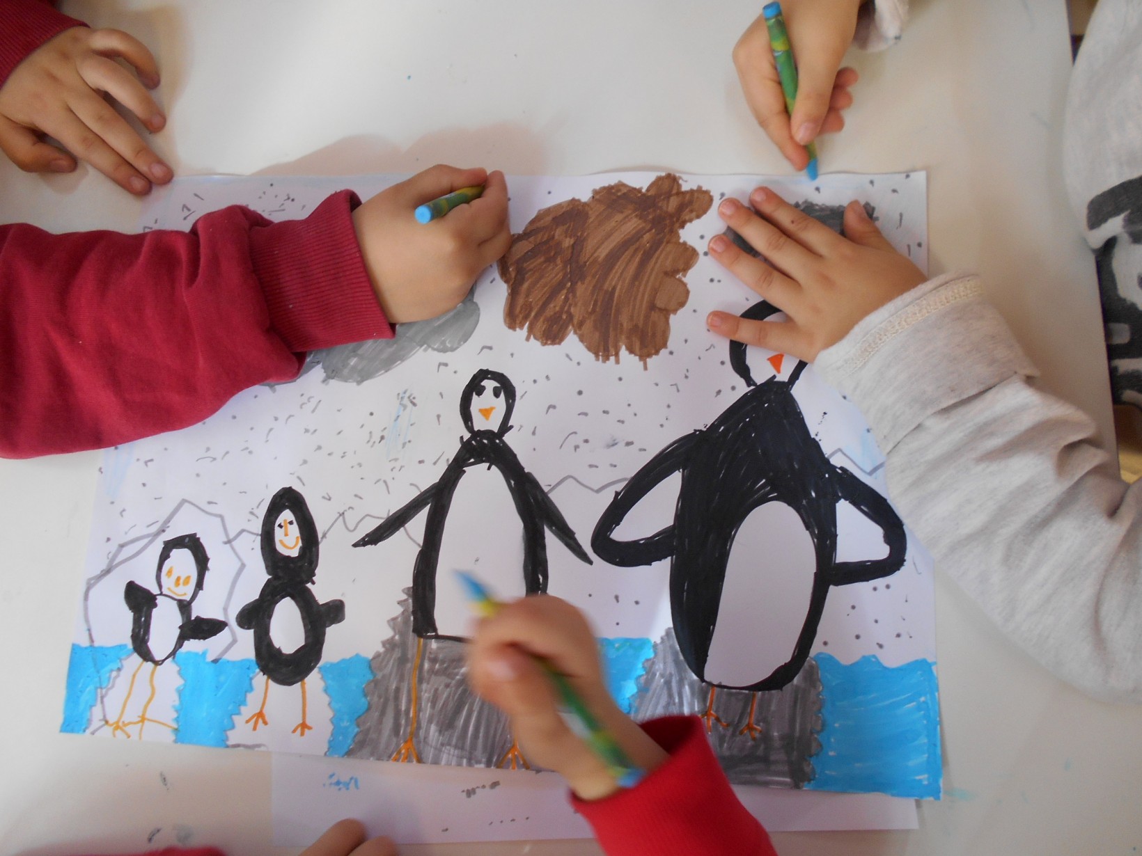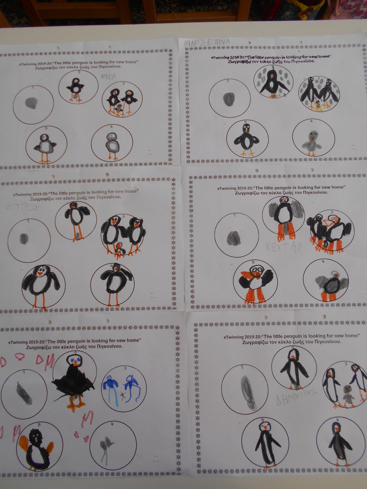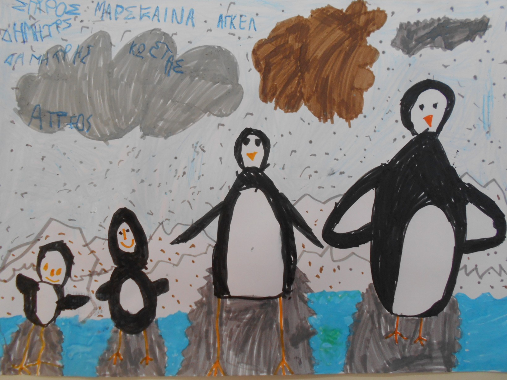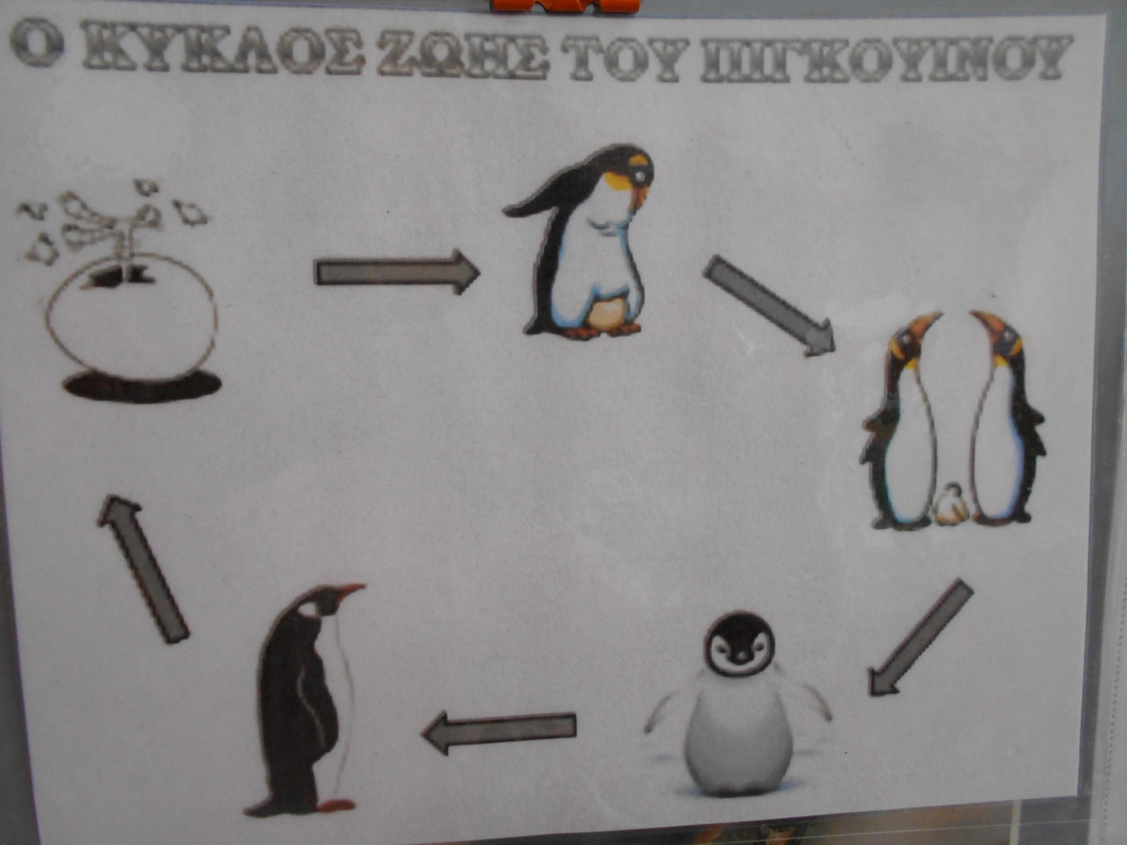 Μάθαμε τον κύκλο ζωής των πιγκουίνων και τον ζωγραφίσαμε.