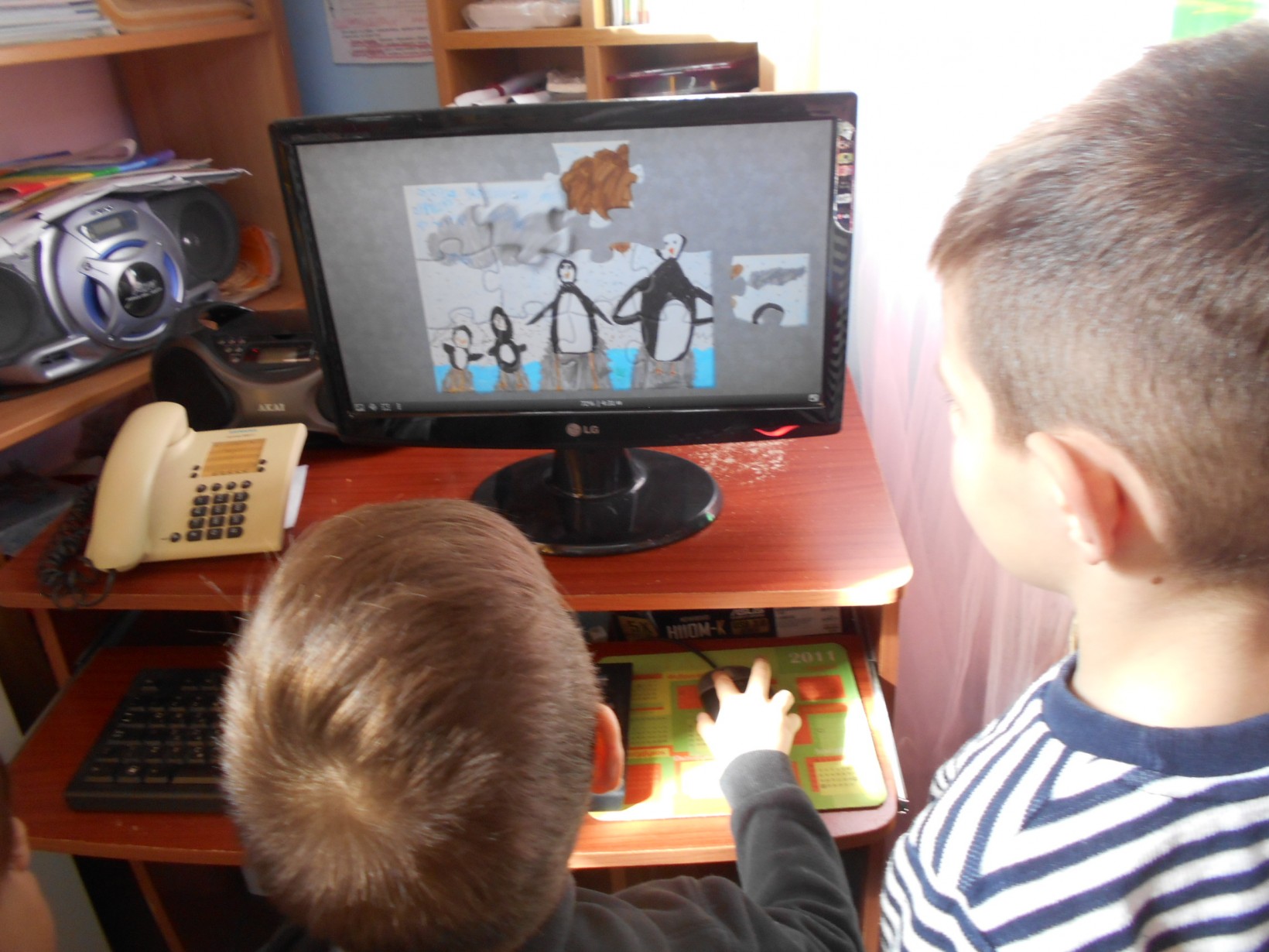 Εκτυπώσαμε εικόνες με πιγκουίνους και φτιάξαμε παζλ.