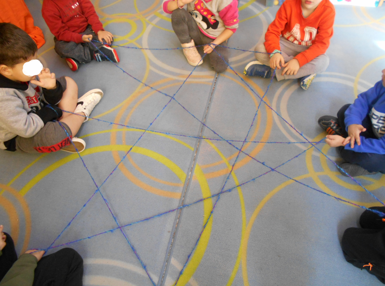 Τα παιδιά στέκονται σε κύκλο και ένα από αυτά κρατά την άκρη ενός κουβαριού νήματος. Το κουβάρι ξετυλίγεται πηγαίνοντας από παιδί σε παιδί. Κάθε φορά το παιδί που κρατά το κουβάρι συμπληρώνει τη φράση: «είναι ωραίο να προσφέρεις γιατί…». Αφού πουν όλα τα παιδιά δημιουργείται ένα πλέγμα. Έτσι συμβαίνει με τον εθελοντισμό…συνδεόμαστε, δημιουργούμε μεταξύ μας ενώσεις, δεσμούς που οδηγούν σταδιακά σε μια κοινωνία ενσυναίσθησης, καλοσύνης, προσφοράς και αγάπης.
