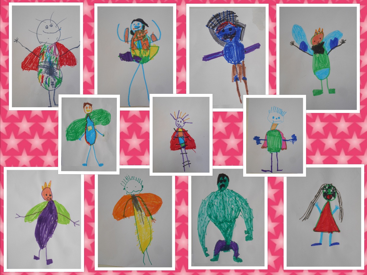 Μοιράζουμε χαρτιά στα παιδιά και αυτά τις ζωγραφίζουν. Έπειτα οι υπερδυνάμεις στερεώνονται στην κάπα και γίνεται η κάπα του/της υπερήρωα/ίδας εθελοντή/ριας.