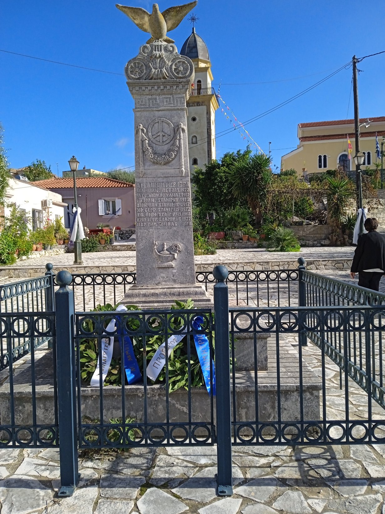 Ανήμερα της εθνικής μας γιορτής έγινε εκκλησιασμός και κατάθεση στεφάνου στο μνημείο των ηρώων του χωριού μας.