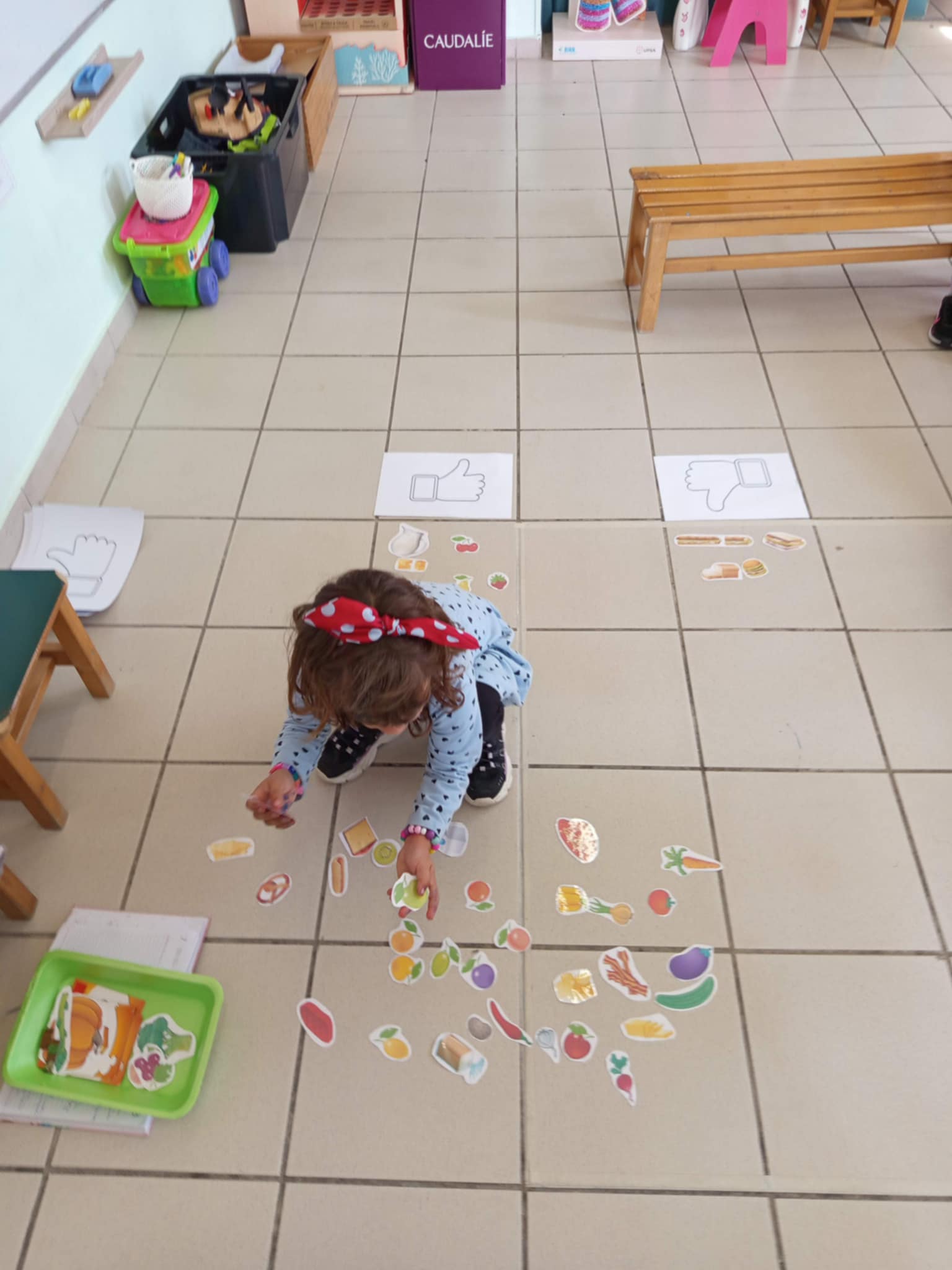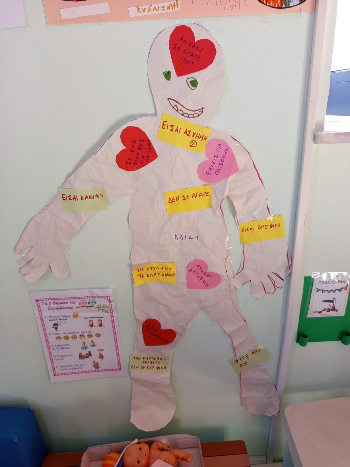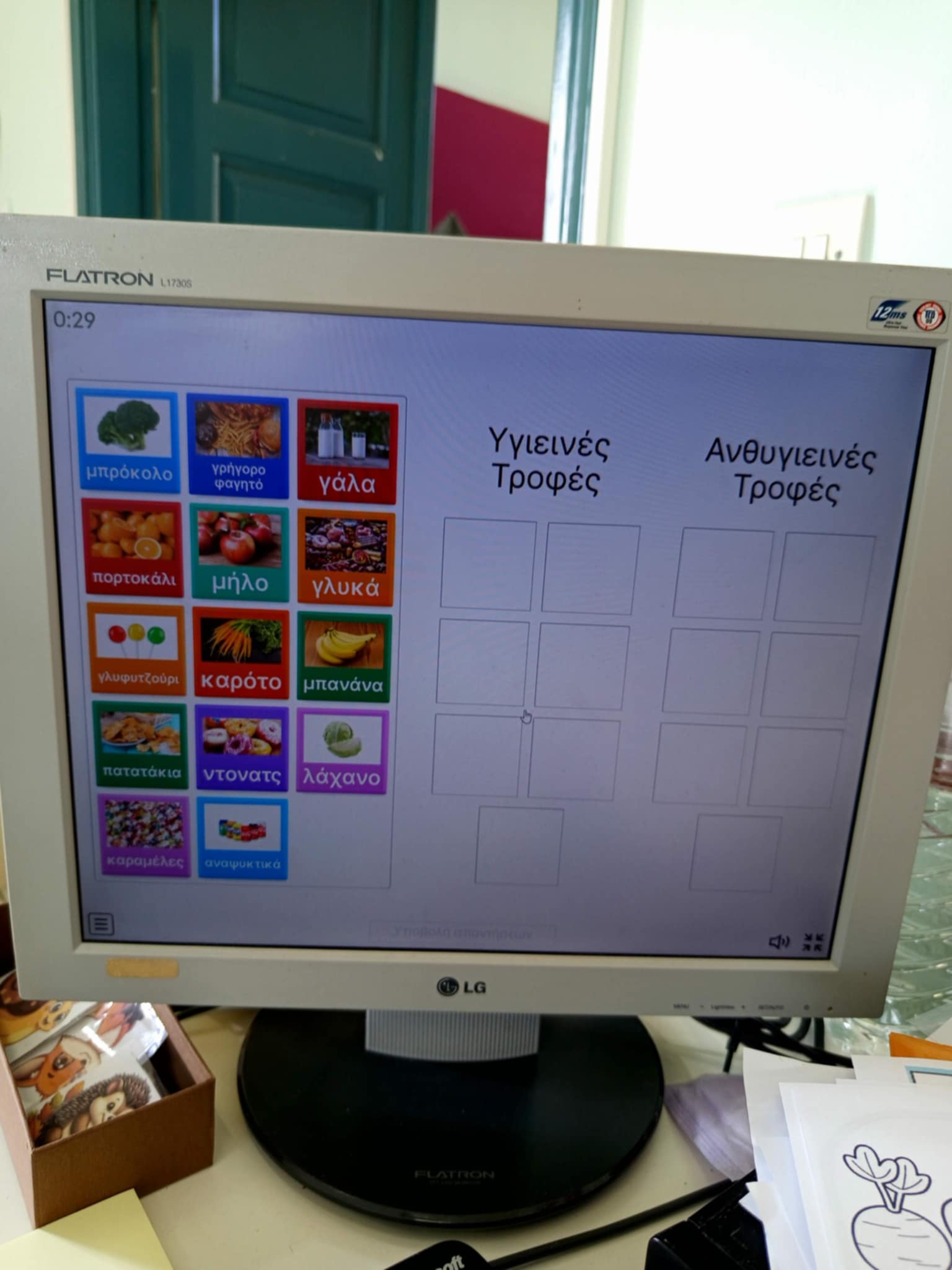 Στη συνέχεια παίξαμε το παιχνίδι “βρες το αρχικό σου γράμμα”. Τα παιδιά μαζί με τις κυρίες έκρυψαν το αρχικό γράμμα από το όνομα της κάθε γιαγιάς, σε διάφορα σημεία του σχολείου και εκείνες μια-μια το έψαξαν με τις οδηγίες των παιδιών “ζεστό-κρύο”.