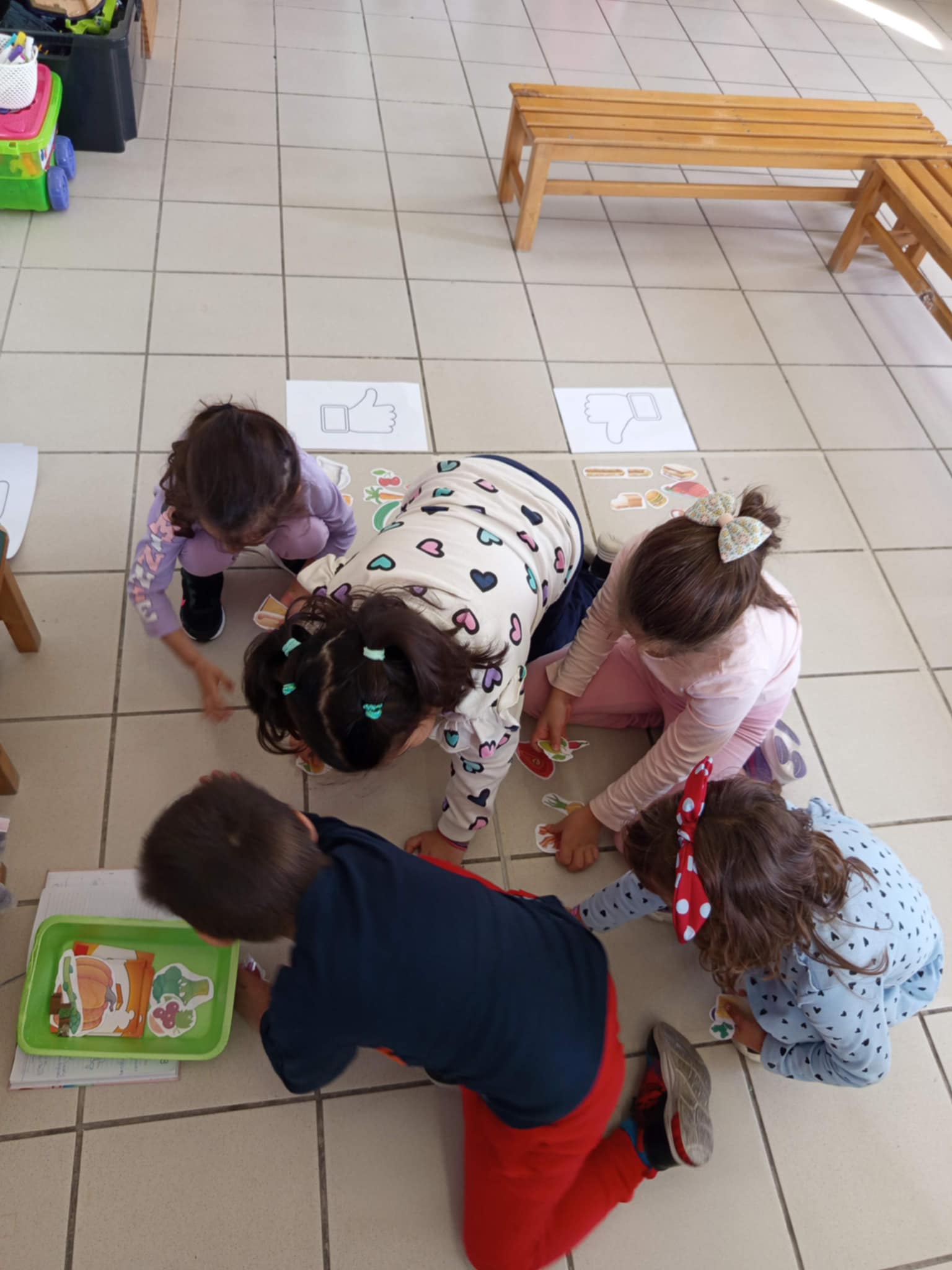 Στην αρχή της συνάντησης έγινε ένας εποικοδομητικός διάλογος ανάμεσα στα παιδιά και τις γιαγιάδες με ποικίλες θεματικές από τις ρουτίνες των παιδιών στο νηπιαγωγείο, την καθημερινότητα των γιαγιάδων, τις όμορφες στιγμές με τα εγγονάκια τους αλλά και την εξιστόρηση του χρονικού της γέννησης των εγγονών τους και της ανατροφής αυτών!