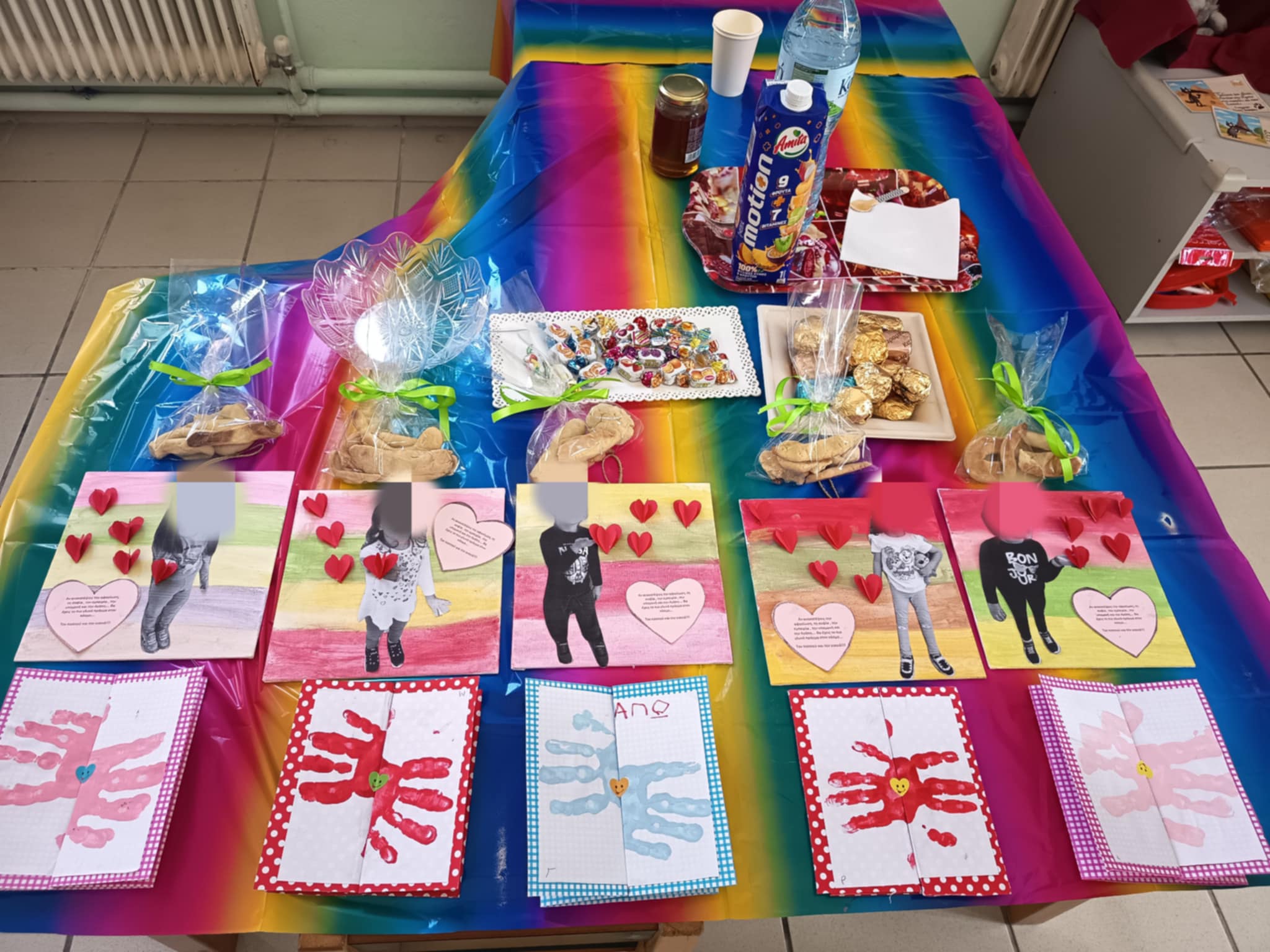Πριν φύγουν από το σχολείο μας πήραν χειροτεχνίες που έφτιαξαν τα παιδιά και τα κεράσματα τους!