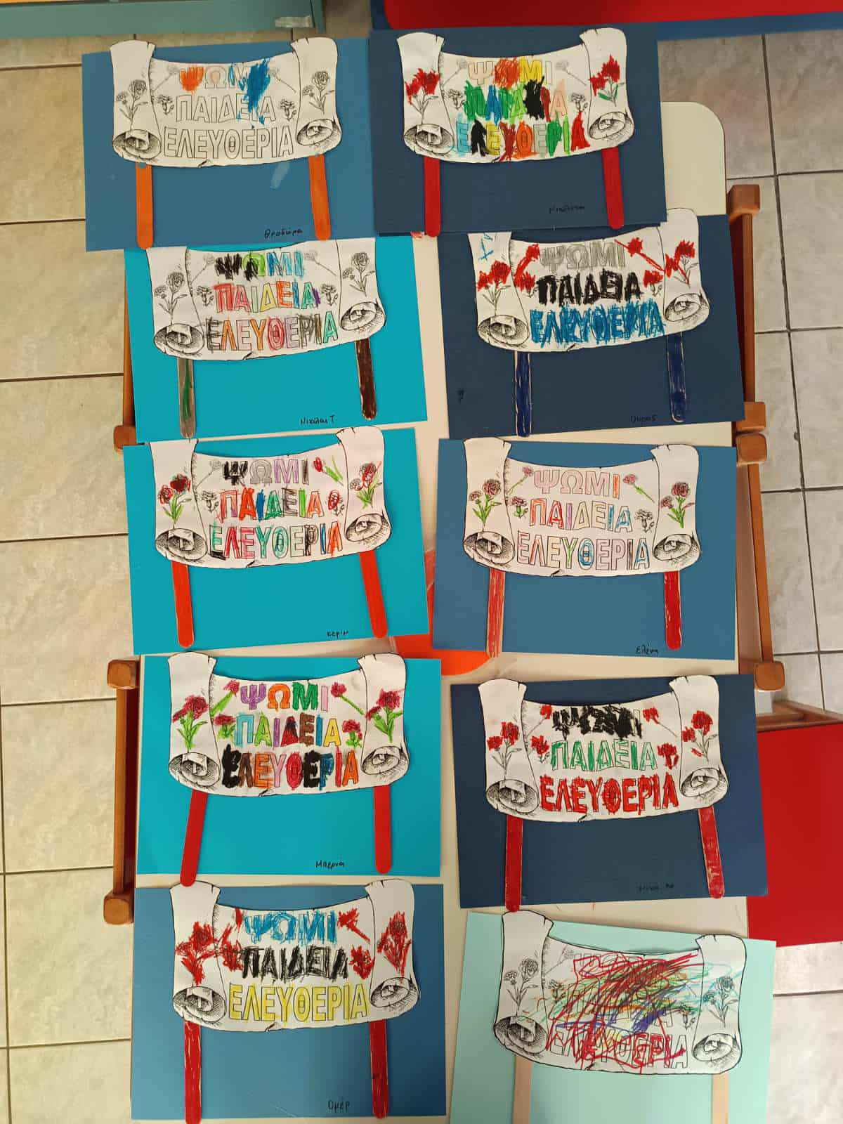 κάναμε τις κατασκευές μας και με χαρά τιμήσαμε τους Ήρωες λέγοντας τα ποιήματα μας με περηφάνια.