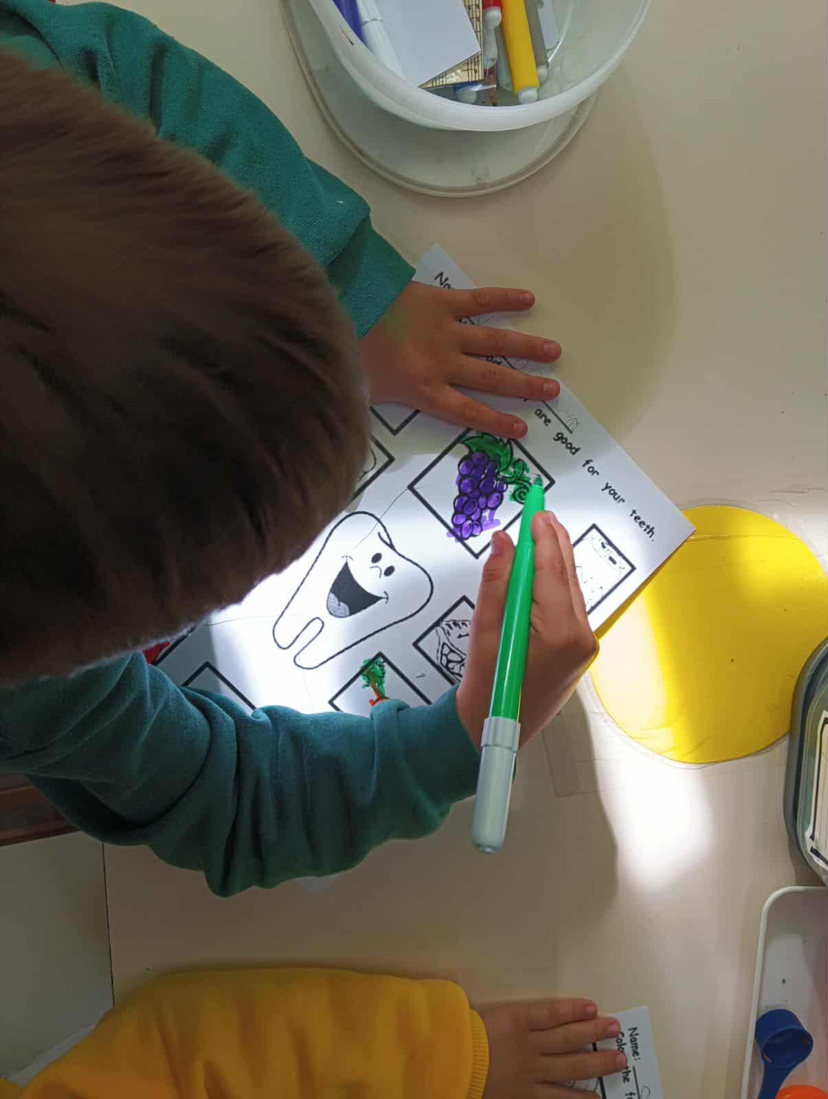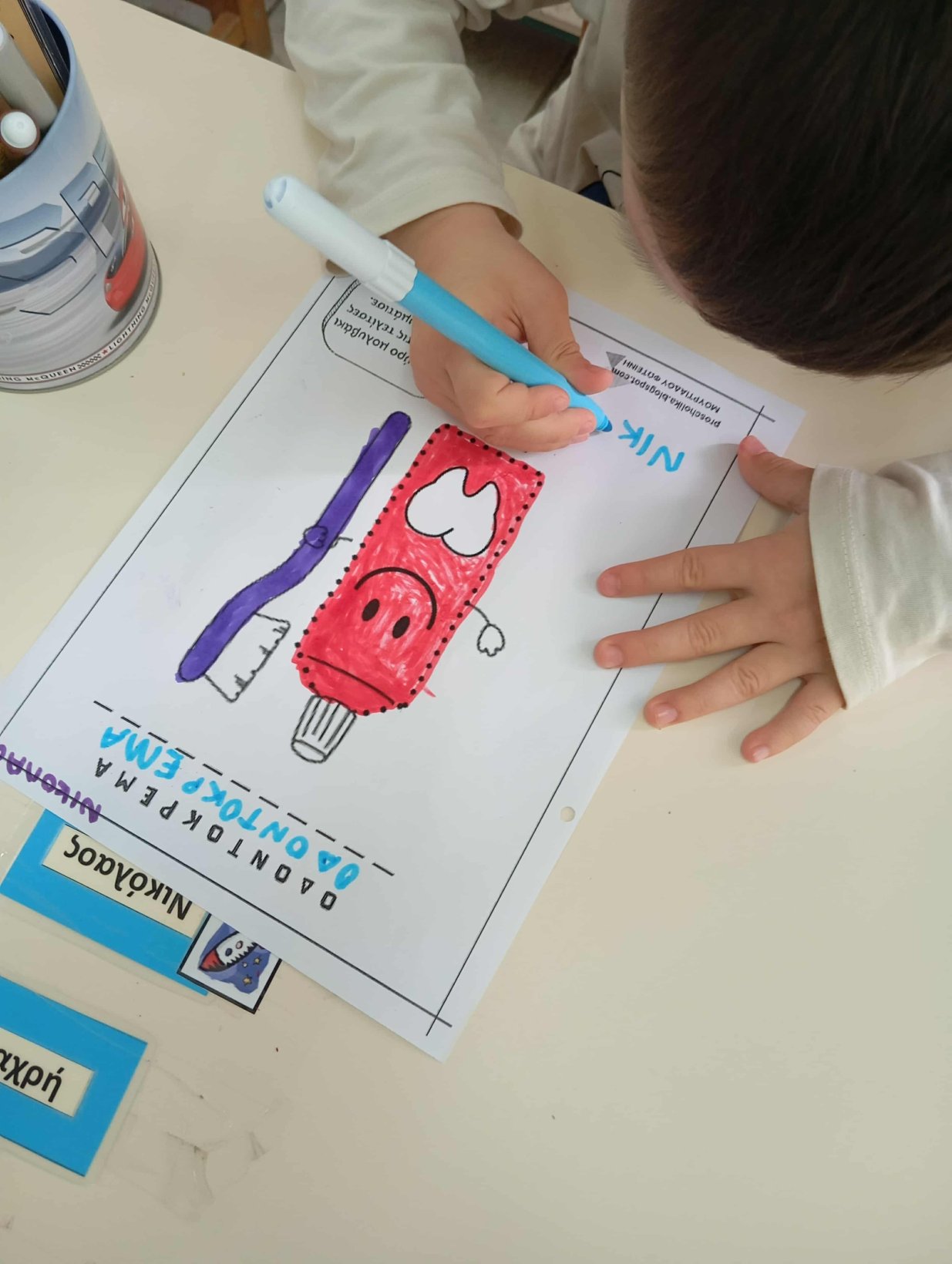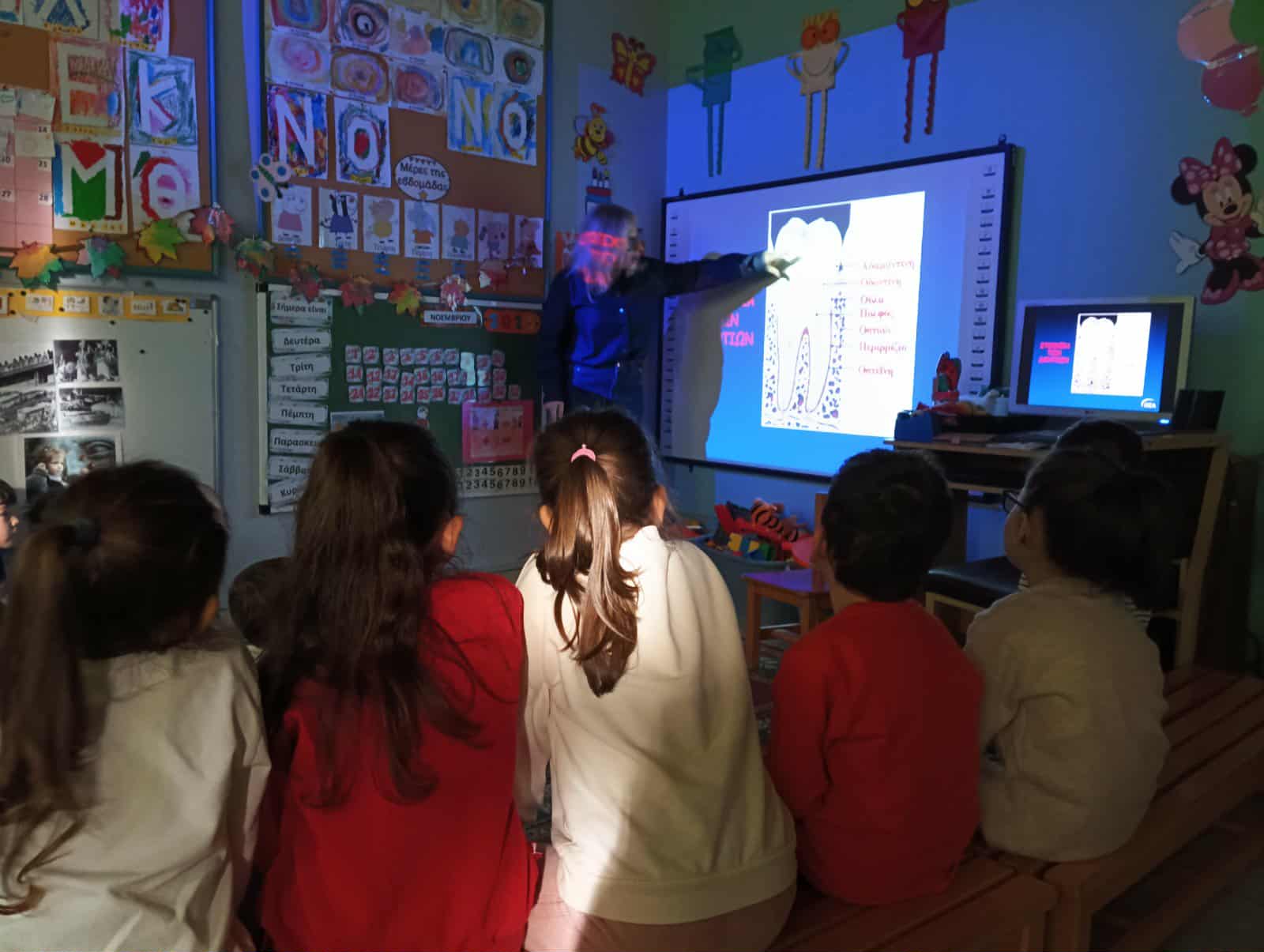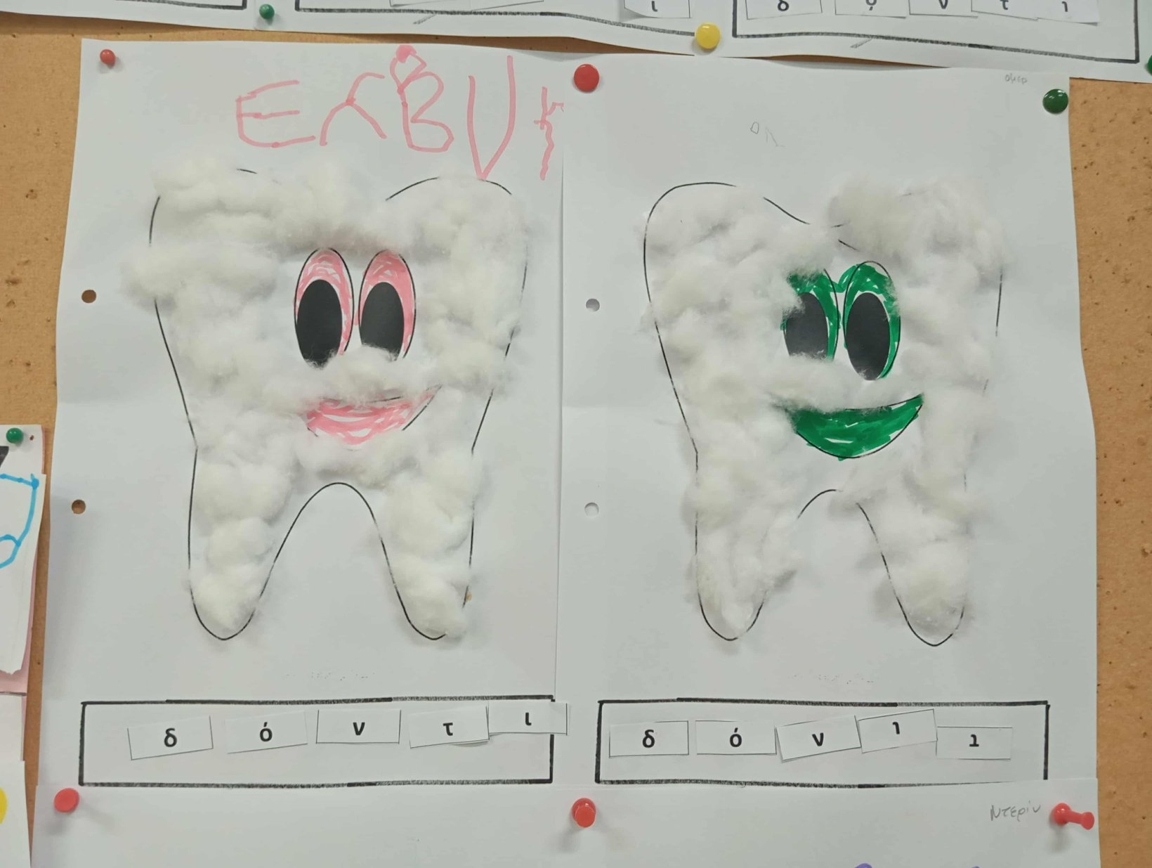 Κατά την εφαρμογή της δράσης “Διατροφή και υγιεινές συνήθειες” για την ενίσχυση της ενεργού πολιτειότητας στο πλαίσιο του “Προγράμματος Σπουδών” Δράσεις του Ενεργού Πολίτη, επισκέφτηκε το σχολείο μας οδοντίατρος, μέλος του οδοντιατρικού συλλόγου Ξάνθης και έδωσε συμβουλές για την υγιεινή των δοντιών στα παιδιά, τους έδειξε τον σωστό τρόπο βουρτσίσματος και τους ενθάρρυνε να επισκέπτονται συχνά τον οδοντίατρο. κατασκευάσαμε μασελάκια και μάθαμε να γράφουμε λεξούλες που αφορούν τα δοντάκια μας.