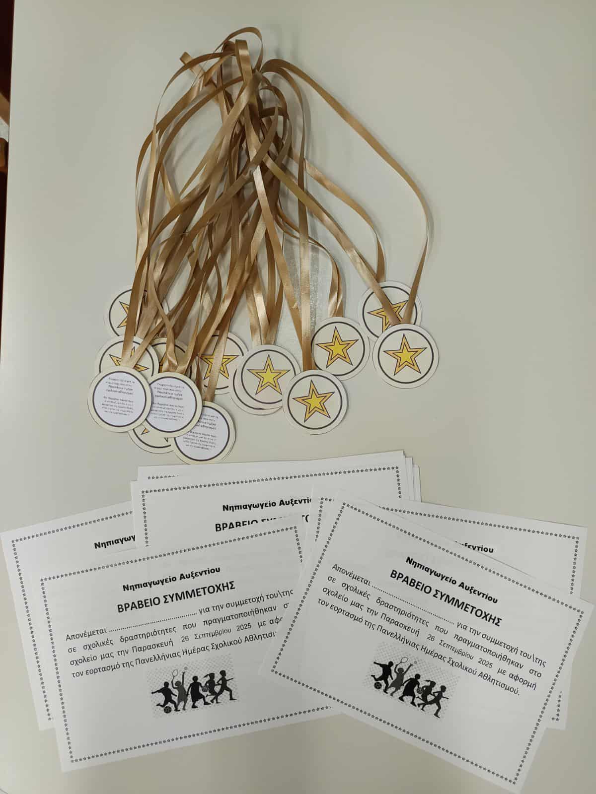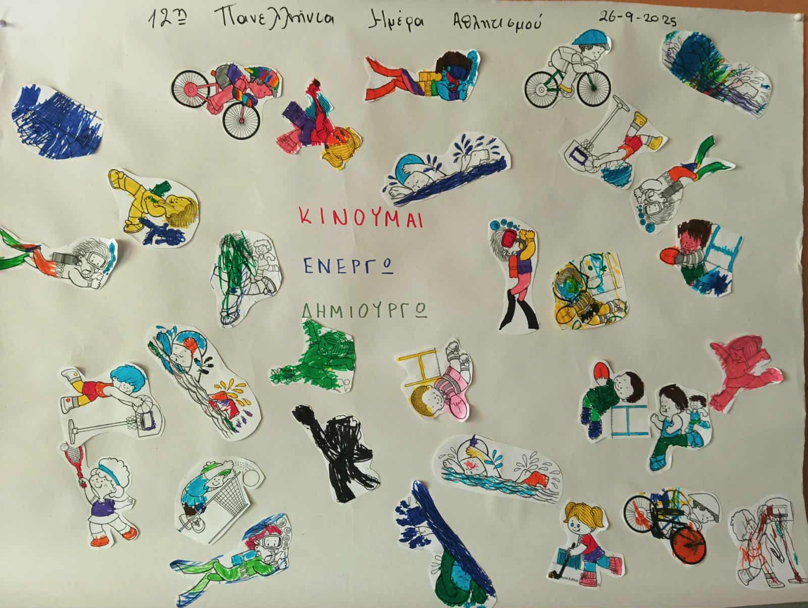 Στα πλαίσια της 12η Πανελλήνιας Ημέρας Σχολικού Αθλητισμού και με κοινό σύνθημα για το έτος 2025 ” Κινούμαι Ενεργώ Δημιουργώ “.Τα παιδιά πήραν μέρος σε αθλητικές δραστηριότητες στο προαύλιο του σχολείου με μεγάλη προθυμία και χαρά, κατασκεύασαν αφίσα, ψήφησαν ποιο είναι το αγαπημένο τους άθλημα και στο τέλος βραβευτήκανε με μετάλλια και βραβεία συμμετοχής.