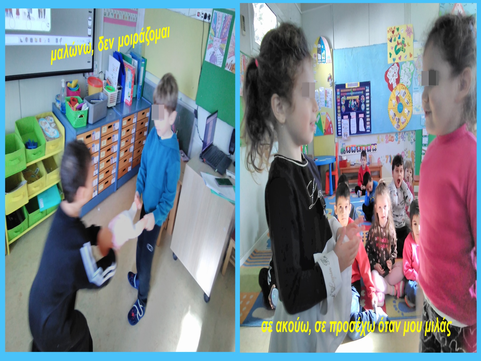 Η ειρηνική συνύπαρξη αποτελεί βασικό στοιχείο του σεβασμού. Τα παιδιά μαθαίνουν να επιλύουν τις διαφορές τους με ήρεμο τρόπο, να εκφράζουν τα συναισθήματά τους και να ζητούν βοήθεια όταν δυσκολεύονται.
