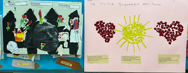 Οι δημιουργίες των δύο ομάδων μετά την παρουσίασή τους από την κάθε ομάδα δημιουργό, αναρτήθηκαν στον πίνακα της τάξης..