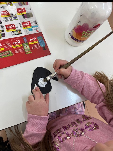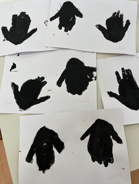 Κάναμε και μια εύκολη κατασκευή με πατρόν τις παλάμες μας, πινέλα και τέμπερα…