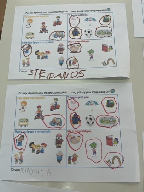 -Ποια αθλήματα γνωρίζω; Εντοπίζουμε πρότερες γνώσεις των παιδιών και στη συνέχεια παρουσιάζεται εποπτικό υλικό με φωτογραφίες διαφόρων αθλημάτων. Κάθε παιδί χρωματίζει το άθλημα της επιλογής του.