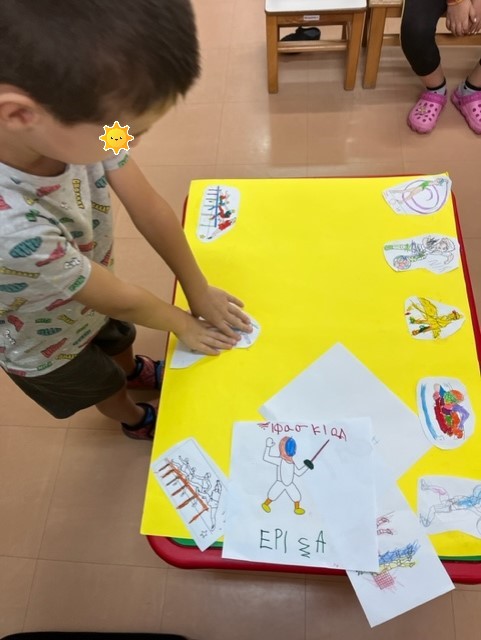 Στην ολομέλεια παρουσιάζει εκ περιτροπής κάθε παιδί το άθλημα που επέλεξε να χρωματίσει , το κατονομάζει.