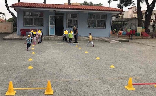 Οργανωμένα κινητικά παιχνίδια στην αυλή.
