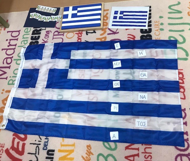 Παρατηρούμε τη σημαία της Ελλάδας και μαθαίνουμε τα χρώματά της. Γιατί υπάρχουν 5 μπλε και 4 λευκές γραμμές;