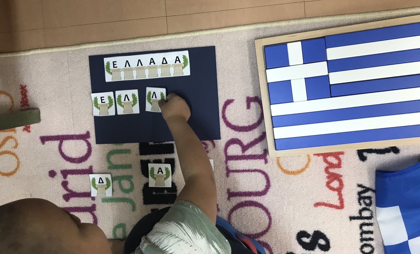 Αναγνωρίζουμε τα γράμματα από τα οποία αποτελείται η λέξη Ελλάδα και μαθαίνουμε να σχηματίζουμε τη λέξη, βάζοντας τα γραμματάκια στη σωστή σειρά.