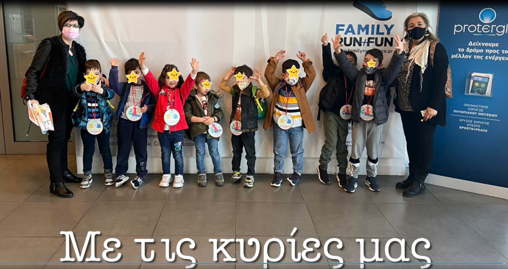 Μας παραλαμβάνουν οι γυμναστές και μας οδηγούν στις αθλητικές μας εγκαταστάσεις