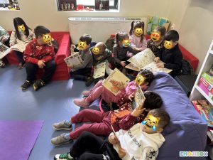 Στη συνέχεια, με αφορμή την **Παγκόσμια Ημέρα Παιδικού Βιβλίου (2 Απριλίου)**, επισκεφθήκαμε την **Κοβεντάρειο Δημοτική Βιβλιοθήκη Κοζάνης**. Εκεί μας περίμενε μια ακόμη όμορφη εμπειρία! Τα παιδιά ξεφύλλισαν παιδικά βιβλία και συμμετείχαν σε δημιουργικές δραστηριότητες ,οπωσ το κυνήγι του χαμένου θησαυρού των βιβλίων,που ενίσχυσαν την αγάπη τους για το διάβασμα και τον κόσμο των βιβλίων.