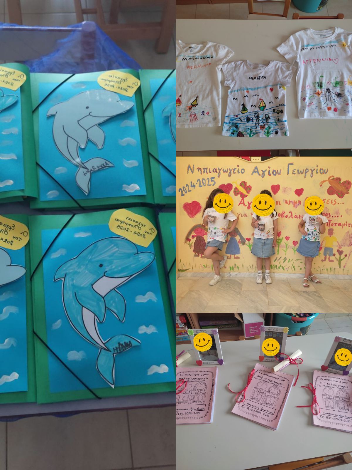Τα νηπιάκια μας ετοίμασαν με πολλή χαρά τα μπλουζάκια της αποφοίτησης ,τα αναμνηστικά τους με στιγμές απο την φοίτηση τους τα δύο χρόνια του Νηπιαγωγείου και δώρο από την κυρία τους μια αναμνηστική φωτογραφία απο το πρώτο τους σχολείο!!Θα ευχηθώ ολόψυχα στις τρεις υπέροχες μαθήτριες μου ΚΑΛΗ ΠΡΟΟΔΟ ΚΑΙ ΚΑΛΗ ΑΡΧΗ ΣΤΟ ΚΑΙΝΟΥΡΓΙΟ ΤΟΥΣ ΣΧΟΛΕΙΟ!!Θα μου λείψουν!!!