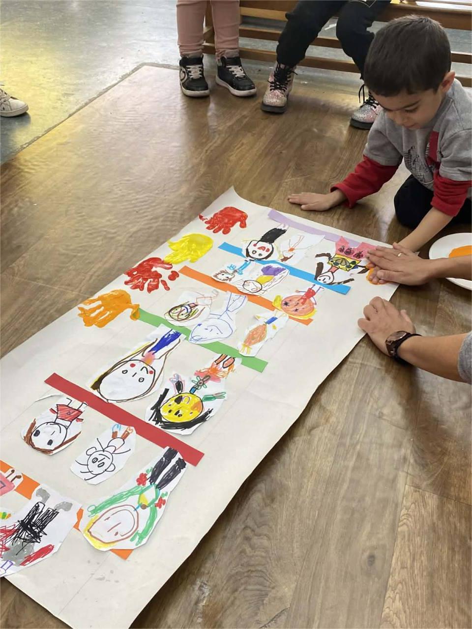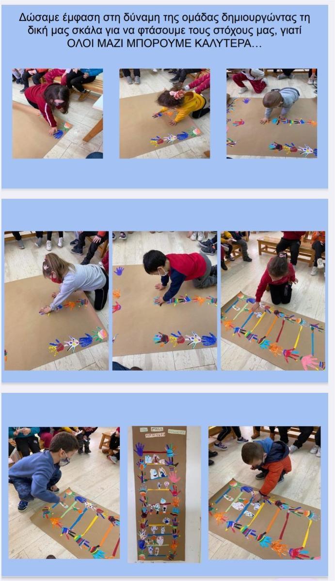 Ακούσαμε το παρακάτω τραγούδι κι έπειτα ζωγραφίσαμε τη γη και ανθρώπους από διάφορες φίλες, ανθρώπους με αναπηρίες και χωρίς αναπηρίες και τα κολλήσαμε σε ένα χαρτόνι όπου πάνω τα παιδιά αντέγραψαν το μήνυμα “Όλοι διαφορετικοί όλοι ίσοι”