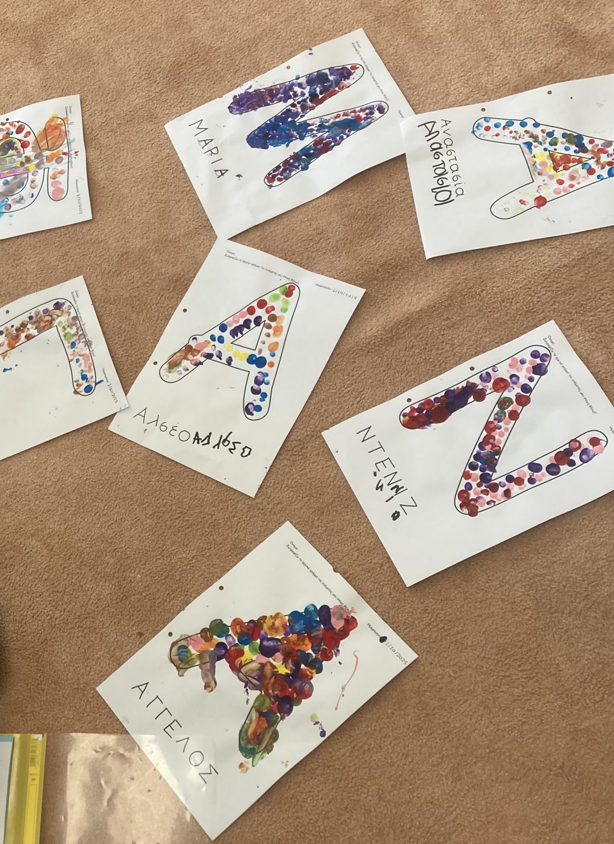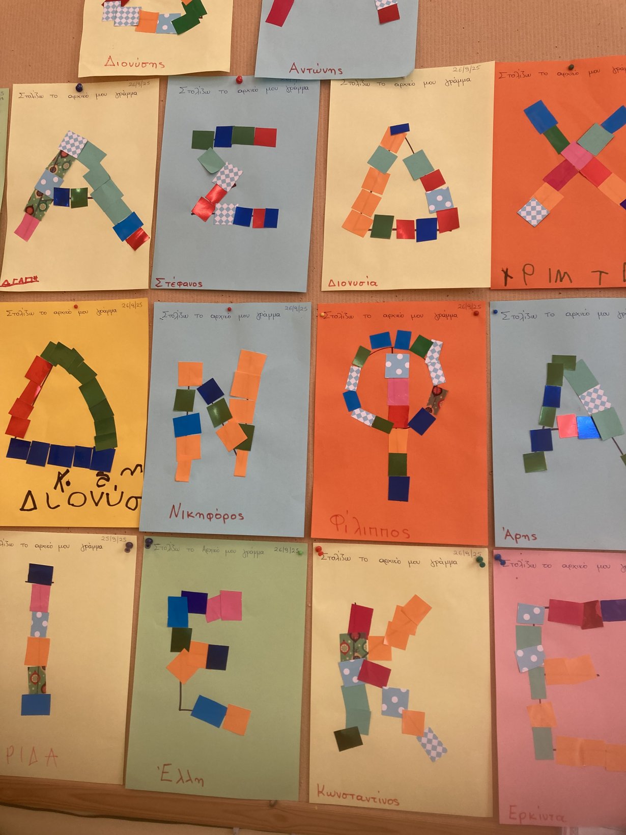 Κάναμε παιχνίδια με το αρχικό γράμμα του ονόματός μας , αλλά και προσπάθειες για τη γραφή του!! Το ζωγραφίσαμε και το συνθέσαμε!!