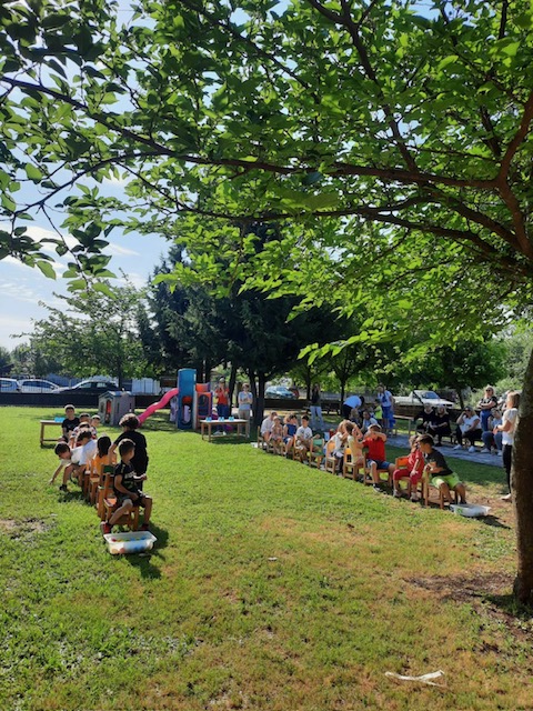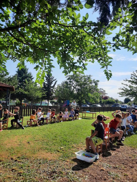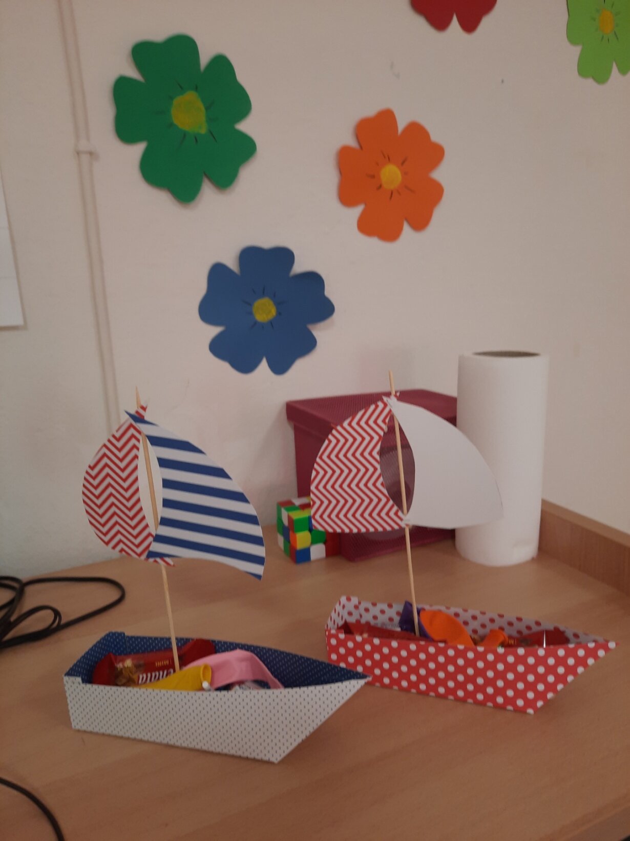 Με αφορμή τον εορτασμό της εθνικής επετείου του 1940 μιλήσαμε με τα παιδιά για τα ιστορικά γεγονότα και την ελληνική σημαία. Το θέμα κέντρισε την περιέργειά τους και ζήτησαν να διερευνήσουμε και να αναζητήσουμε σημαίες και άλλων χωρών, κάποιες από τις οποίες τα εντυπωσίασαν περισσότερο με τα χρώματά τους και θέλησαν να τις αναπαραστήσουν στο χαρτί. Σημαία στη σημαία προέκυψε η ιδέα για ένα ομαδικό κολάζ.