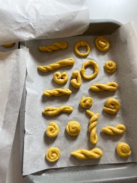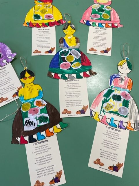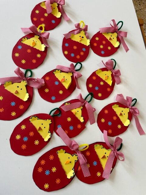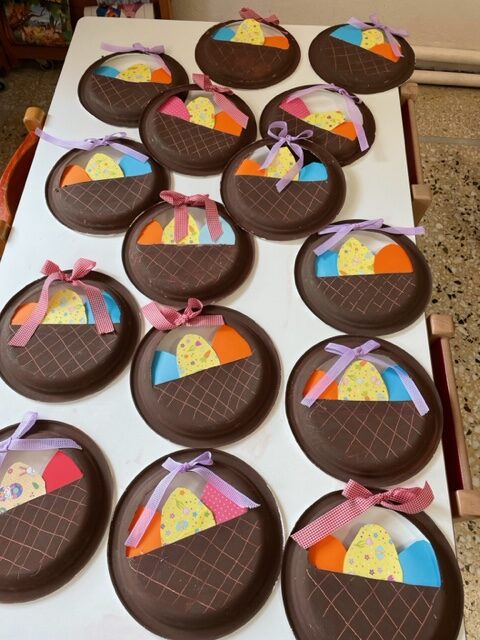 Για το Πάσχα που έρχεται βάψαμε αυγά, φτιάξαμε κουλουράκια, τα οποία έψησε μια μαμά και μας τα έφερε, φτιάξαμε καλαθάκια και κάρτες.