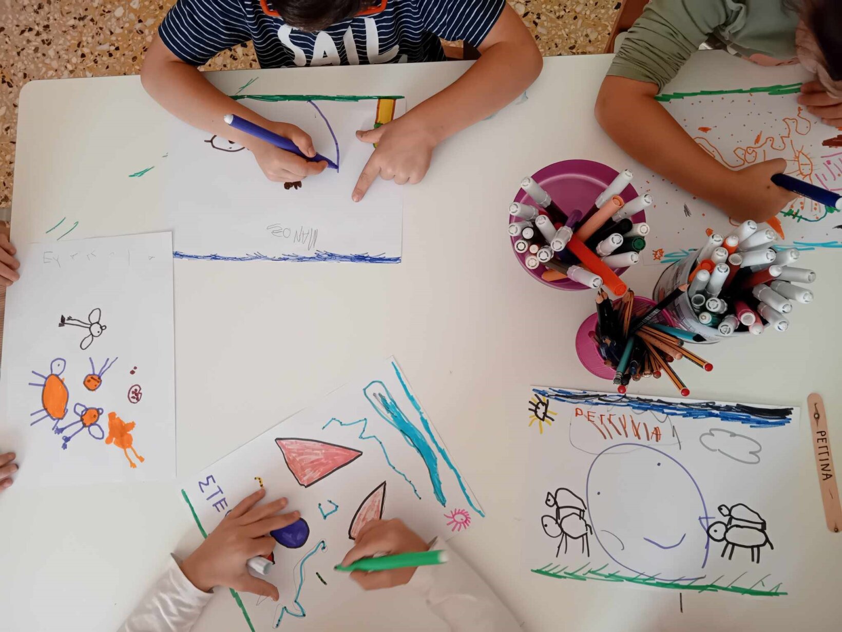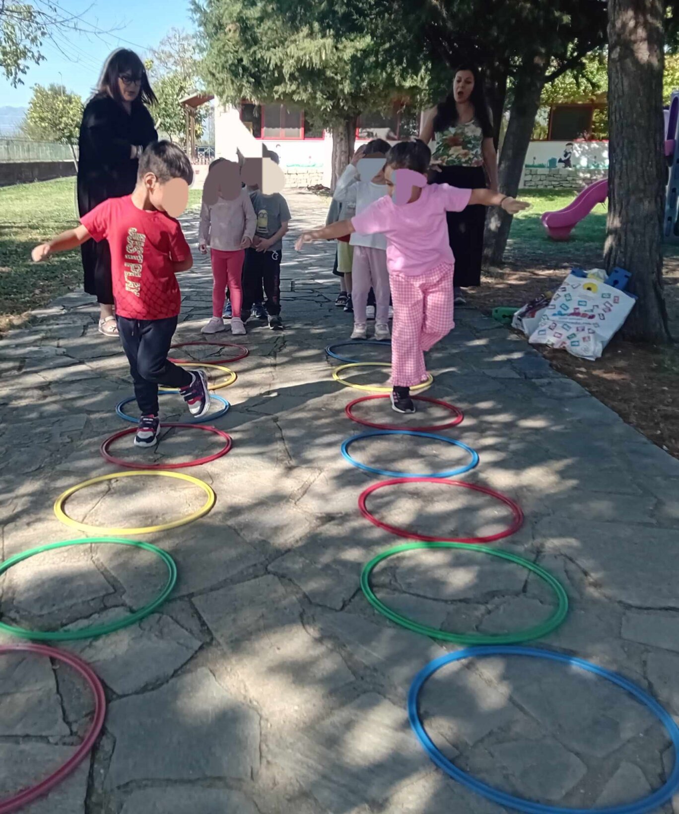 Δημιουργήσαμε σενάρια όπου τα παιδιά αντιμετωπίζουν καταστάσεις στις οποίες χρειάζονται δικαιώματα π.χ. ένα παιδί θέλει να παίξει, αλλά δεν έχει φίλους και συζητήσαμε πως μπορούν να διασφαλιστούν αυτά τα δικαιώματα (αγάπη, φροντίδα, συναργασία)