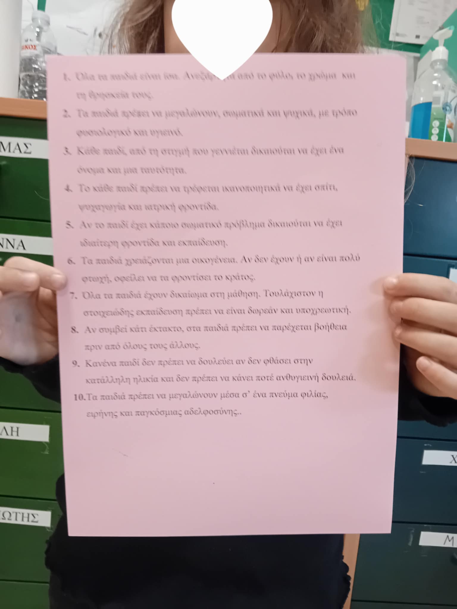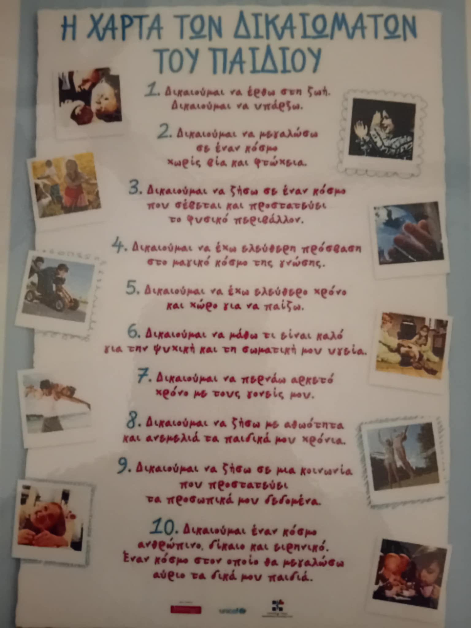 Συζητήσαμε με απλά λόγια ότι όλα τα παιδιά στην κόσμο έχουν δικαιώματα π.χ. δικαίωμα στην αγάπη, το παιχνίδι.