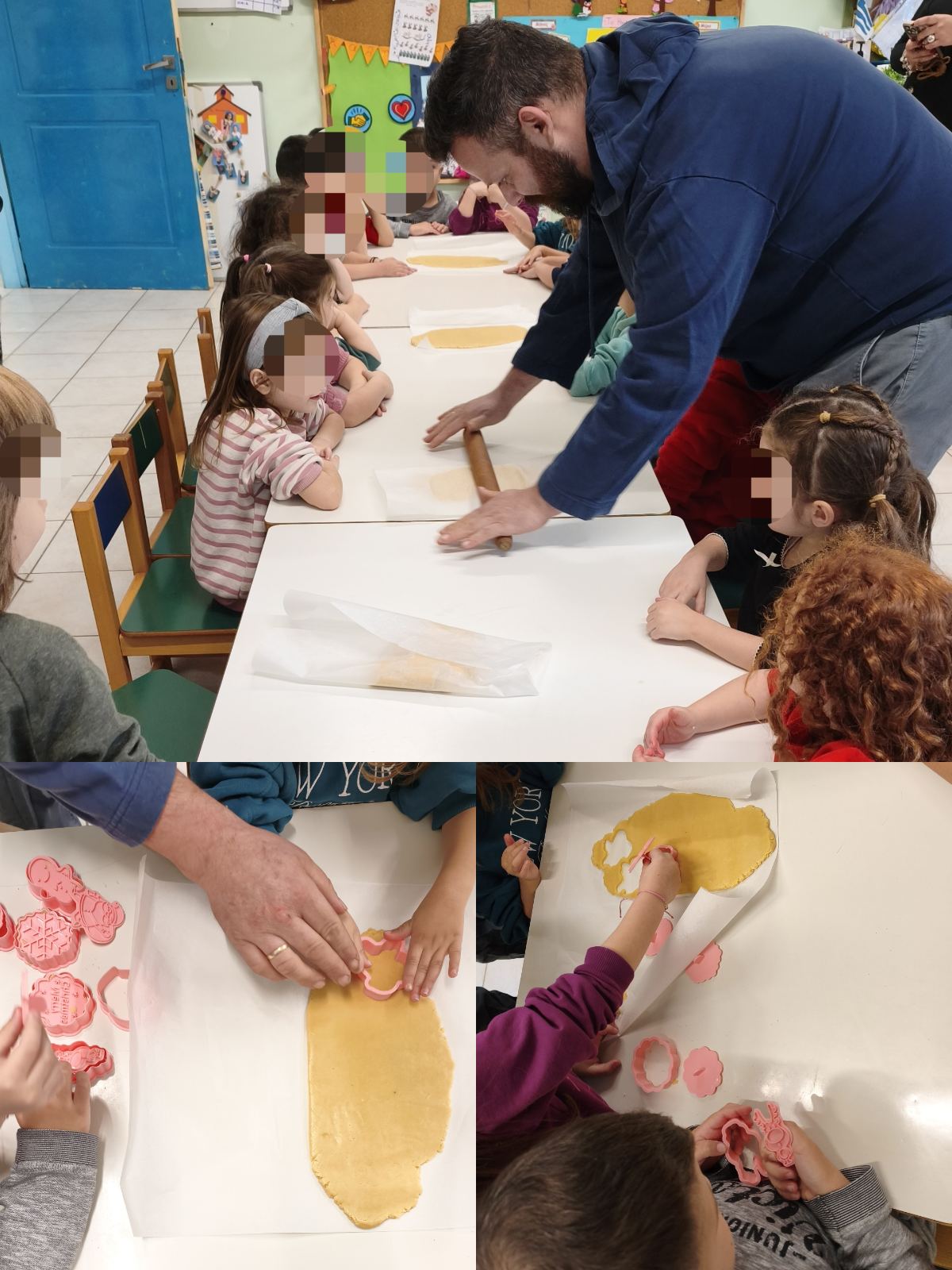 Την Παρασκευή το πρωί μας επισκέφτηκε ο μπαμπάς ενός μαθητή μας για να φτιάξουμε μαζί του χριστουγεννιάτικα μπισκότα! Τα παιδιά το καταχάρηκαν καθώς διάλεξαν από μια ποικιλία στενσιλ, την αγαπημένη τους χριστουγεννιάτικη φιγούρα και έφτιαξαν το κάθε ένα από 2 μπισκότα! Με την βοήθεια του κυρίου Μάριου, θα φάμε τα πιο νόστιμα χριστουγεννιάτικα μπισκότα αυτές τις γιορτές!