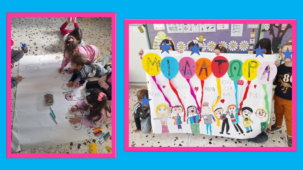 Με αφορμή τη σημερινή ημέρα, οι μαθητές του Νηπιαγωγείου μας,συμμετείχαν σε δράσεις ευαισθητοποίησης και ενημέρωσης για την πρόληψη και αντιμετώπιση της σχολικής βίας και εκφοβισμού, στέλνοντας τα δικά τους μηνύματα για την Πανελλήνια Ημέρα κατά της Σχολικής Βίας που έχει καθιερωθεί στις 6 Μαρτίου από το Υπουργείο Παιδείας και την Πανελλαδική εκστρατεία ενάντια στην ενδοσχολική βία από το “Χαμόγελο του παιδιού” με βασικό μήνυμα “‘ΜΙΛΑ ΤΩΡΑ”