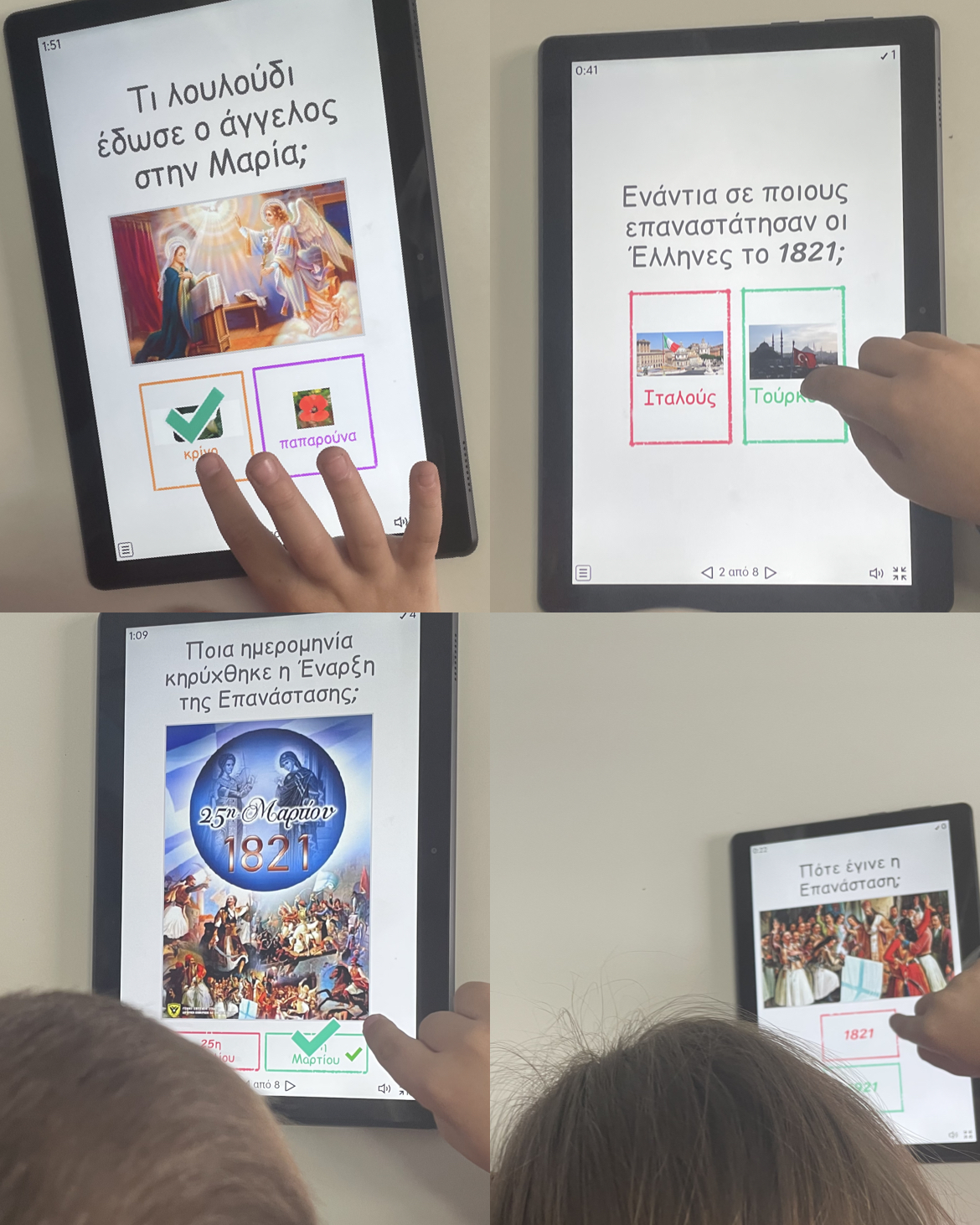 Για περεταίρω εμπέδωση και εξάσκηση παίξαμε διαδραστικά παιχνίδια ερωταπαντήσεων, παιχνίδια μνήμης και πάζλ σχετικά με την 25 η Μαρτίου 1821.