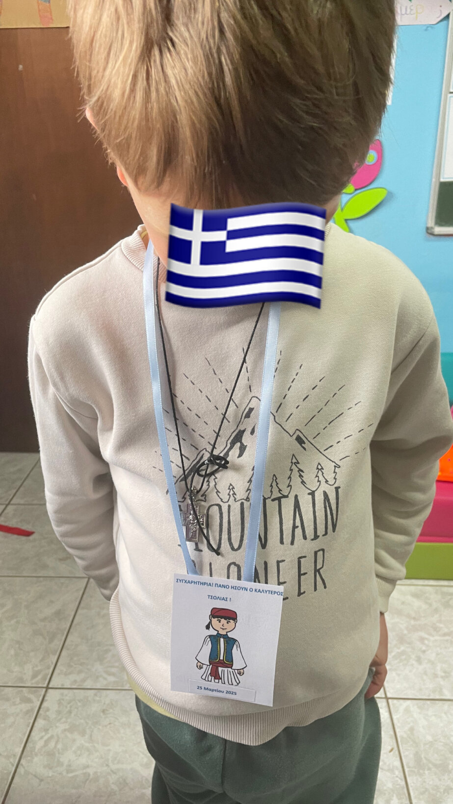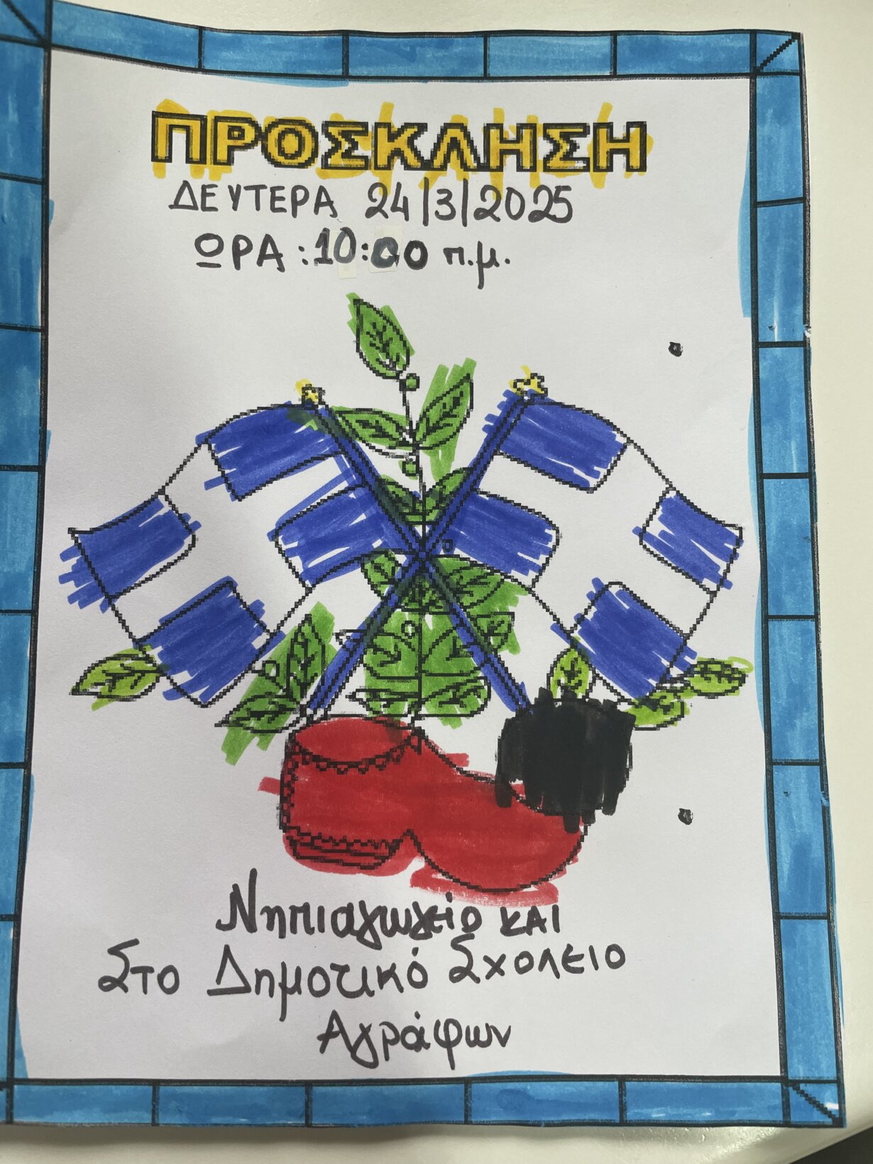 Ιδιαίτερα ευχάριστο είναι ότι οι μικροί μαθητές αποτυπώνουν τα όσα έμαθαν και στο σπίτι φέρνοντας μας ζωγραφιές όπως αυτή του Τσολιά!