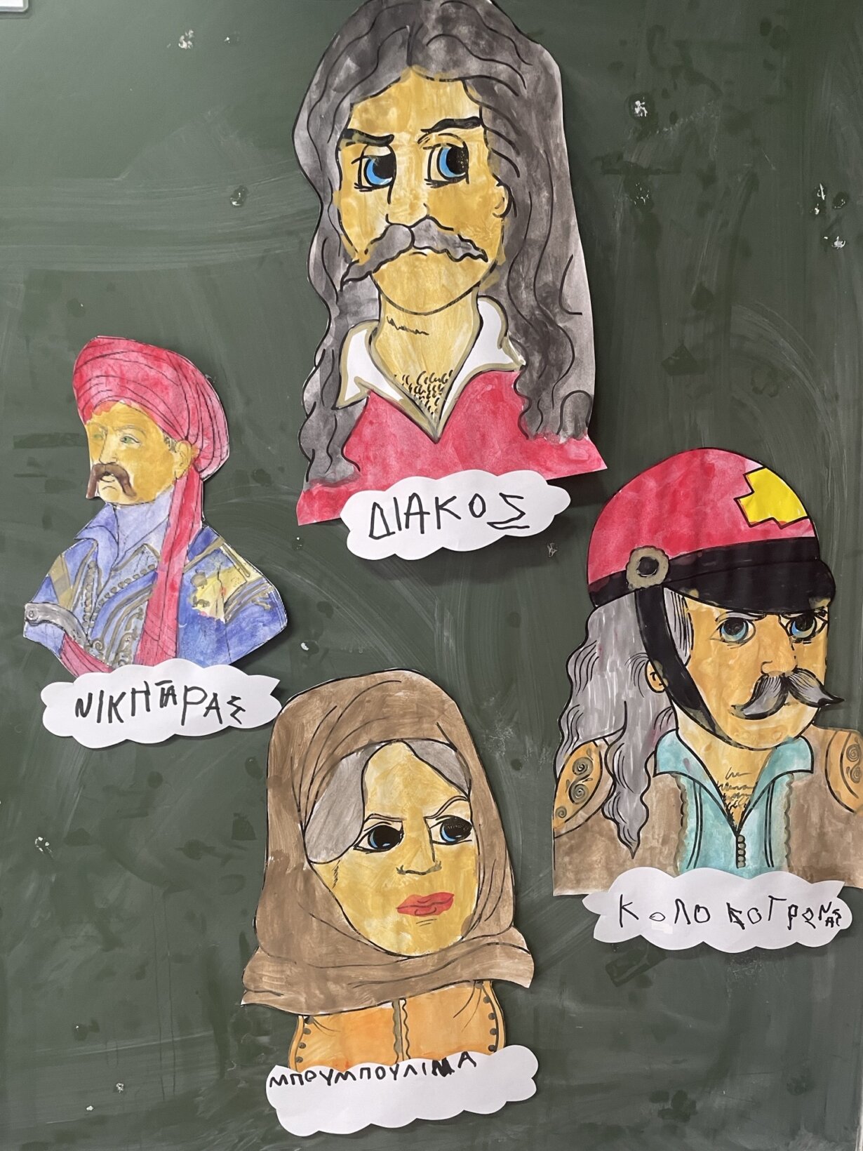 Στη συνέχεια γνωρίσαμε τους ήρωες της Ελληνικής Επανάστασης, σχολιάσαμε τα ρούχα και τα χαρακτηριστικά τους, τα μαλλιά και τα μουστάκια τους, αλλά και την περιοχή που έδρασαν και έπειτα δημιουργήσαμε τον ήρωα που μας έκανε εντύπωση…Τα αποτελέσματα καταπληκτικά!
