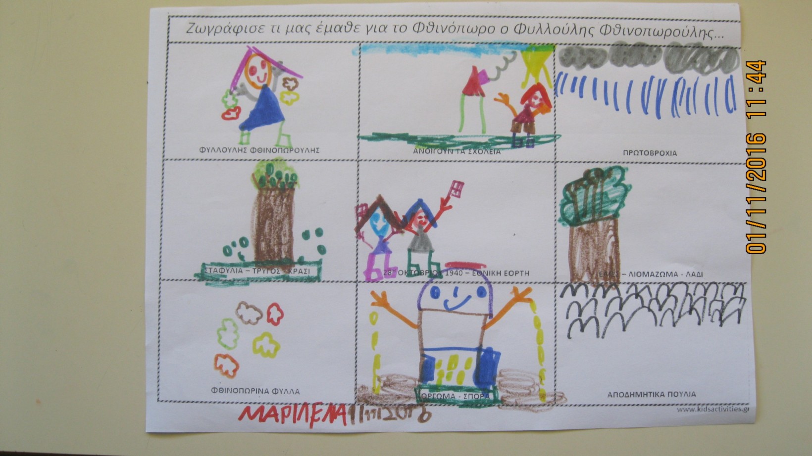 Με τη βοήθεια του φυλλούλη του φθινοπωρούλη (υλικό από kidsactivities.gr ) μιλήσαμε ξανά για το φθινόπωρο,τις αλλαγές του καιρού,τους μήνες του,και σημαντικά γεγονότα που θυμόμαστε.