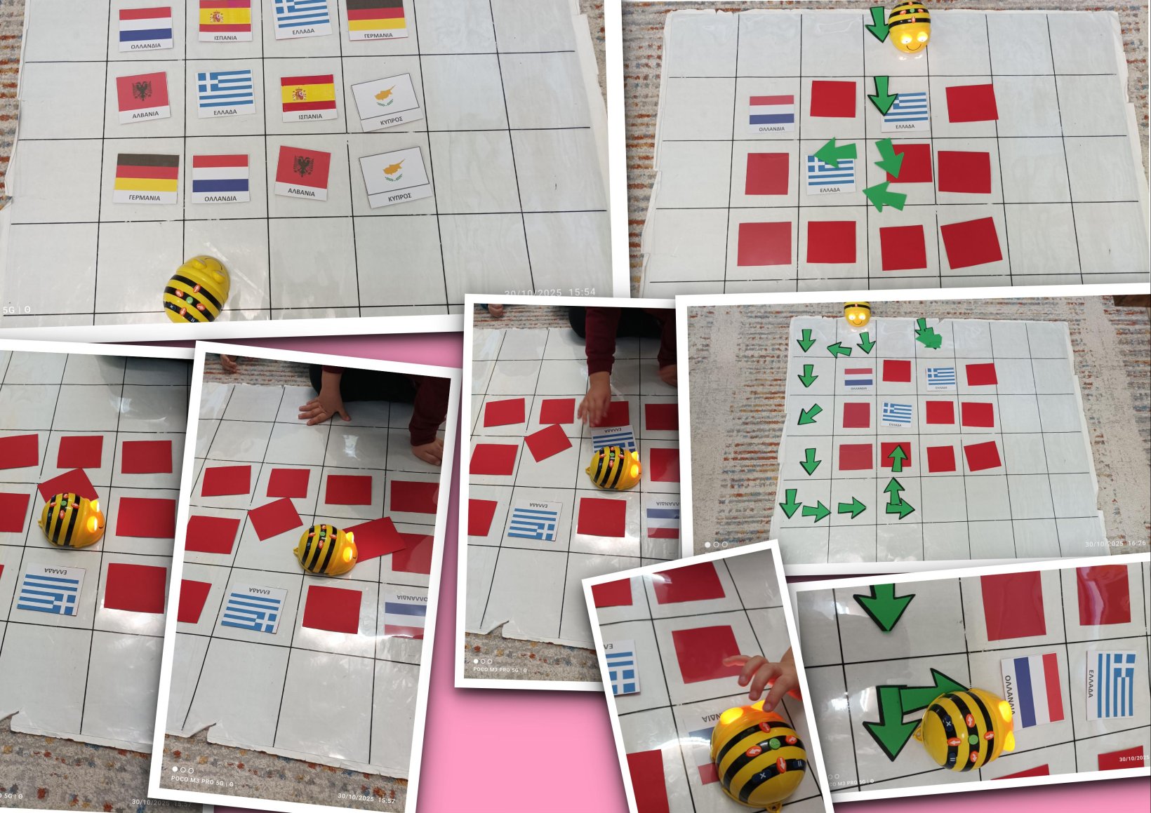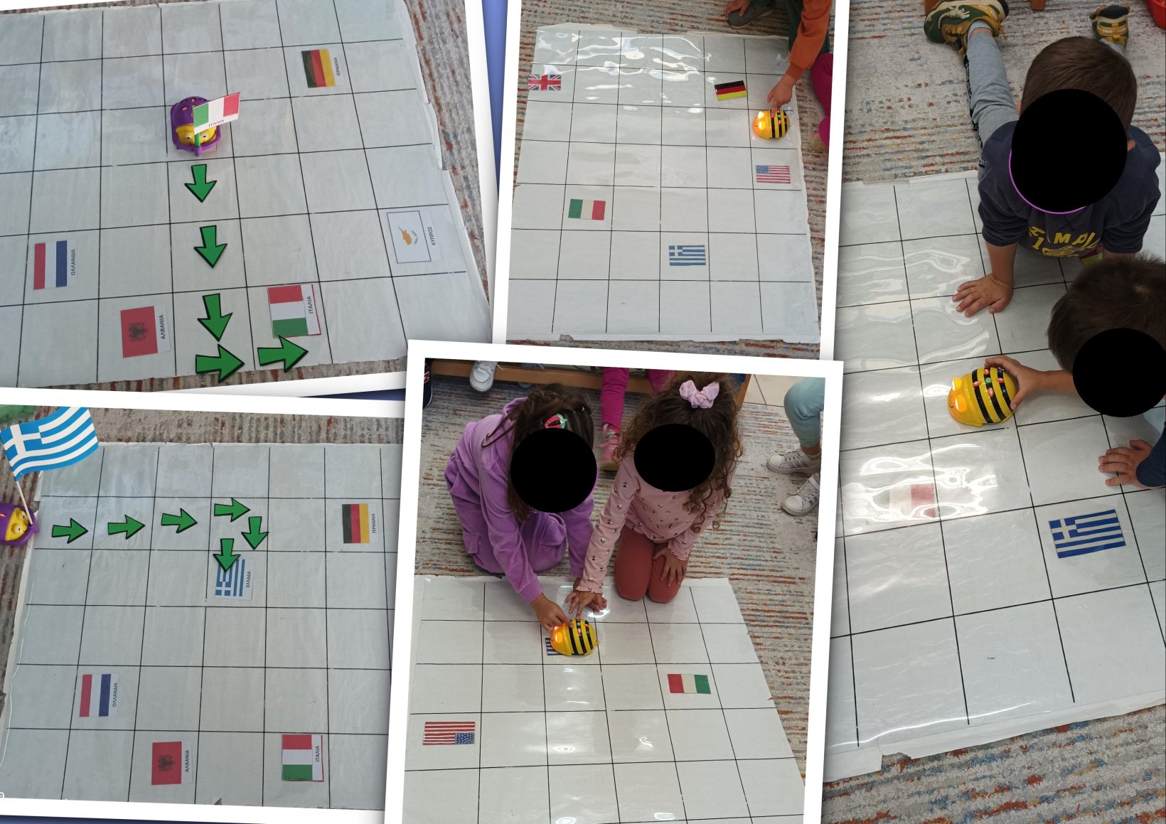 Αφού έχουμε παρουσιάσει το υλικό με τις σημαίες, τις παρατηρήσαμε, ζωγραφίσαμε, τις φτιάξαμε με πλαστελίνη, βρήκαμε κοινά στοιχεία, κάναμε ομαδοποιήσεις , ήρθε η στιγμή να παίξουμε με το αγαπημένο μας BeeBot