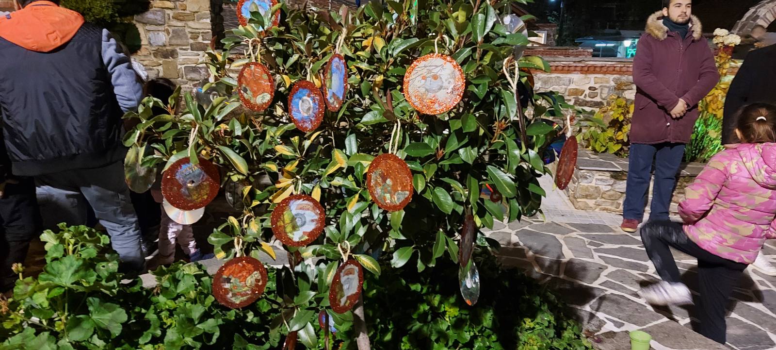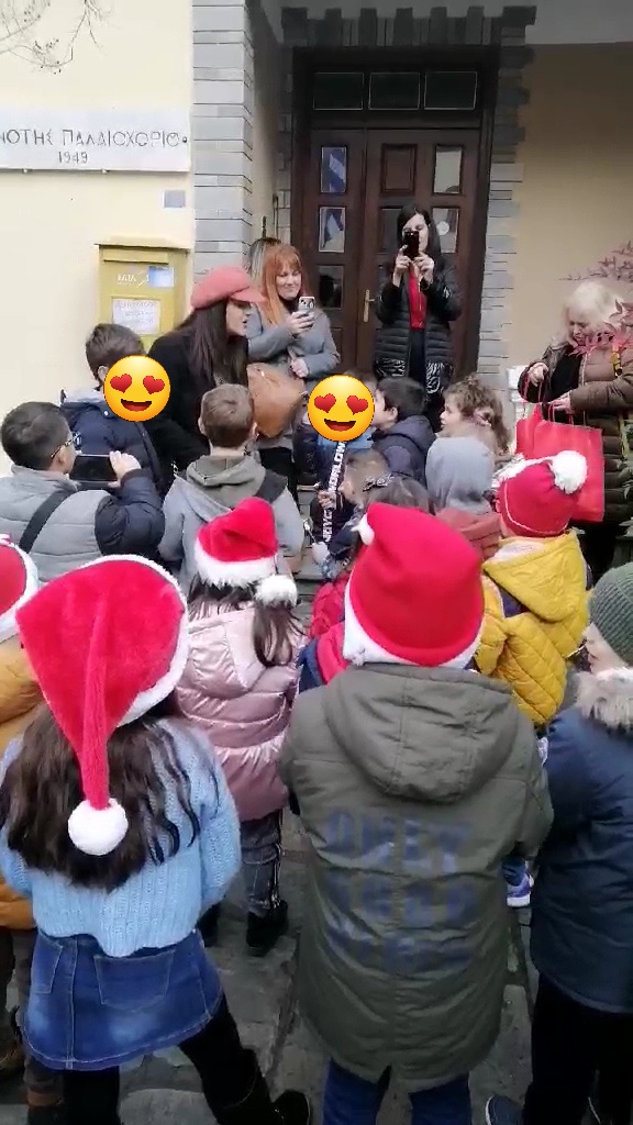 Εεεε επιτέλους ήρθε η ώρα να τα πούμε. Η κυριακάτικη πλατεία γεμάτη κόσμο μας χάρηκε και μας καμάρωσε. Πριν ξεκινήσουμε να τα λέμε, κάναμε μία πρόβα μπροστά στην κοινότητα. Εκεί μας περίμενε μία έκπληξη! Ο Άγιος Βασίλης είχε μάθει ότι ετοιμαζόμαστε να πούμε κάλαντα για να μαζέψουμε χρήματα και να κάνουμε ένα σημαντικό δώρο στο χωριό μας (σχέδιο δράσης) και μας άφησε έναν σάκο με ένα δώρο για τον καθένα: κουδουνάκι για τα κάλαντα και καλτσούλες χριστουγεννιάτικες. Κι ένα γράμμα!!! Ήταν υπέροχα…