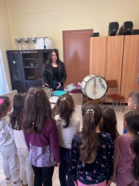 Στα πλαίσια της γνωριμίας των παιδιών με την ιστορία, τις παραδόσεις και τα έθιμα του τόπου τους επισκεφθήκαμε σήμερα τον πολιτιστικό σύλλογο του χωριού, ο οποίος φιλοξενεί στον χώρο του την φιλαρμονική αλλά και το μουσείο του χωριού. Είχαμε, λοιπόν την ευκαιρία να δούμε και να μάθουμε τα όργανα που χρησιμοποιούν τα παιδιά της φιλαρμονικής αλλά και να δούμε από κοντά τις παραδοσιακές φορεσιές που φορούσαν οι άνθρωποι του χωριού τα παλιά χρόνια.