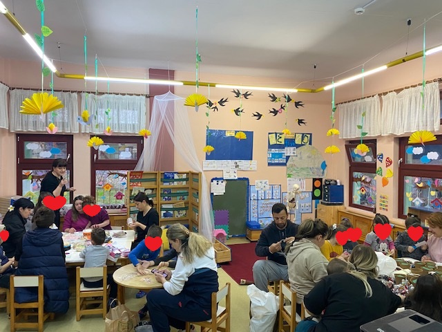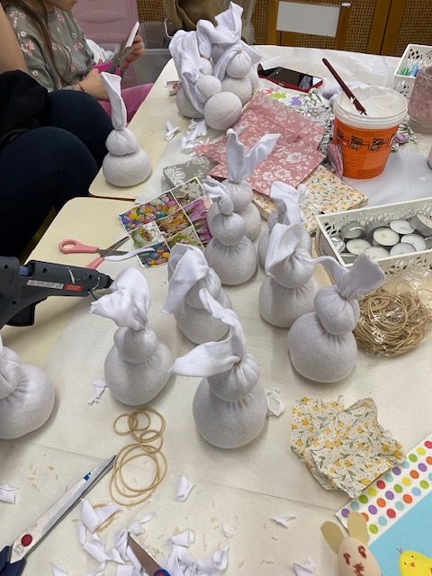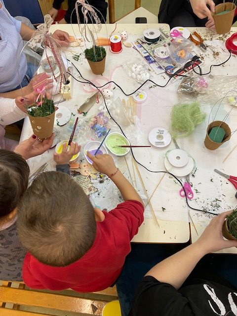 Το βροχερό αυτό πρωινό στήθηκε στο σχολείο μας έπειτα από συνεννόηση με τους γονείς των παιδιών, ένα πασχαλινό δημιουργικό εργαστήρι. Μικροί και μεγάλοι σήκωσαν τα μανίκια τους και στρώθηκαν στην “δουλειά” με μεράκι και χαρά και αυτό φάνηκε στα αποτελέσματα. Μέσα σε ένα απόλυτο κλίμα συνεργασίας και δημιουργικότητας κατασκευάστηκαν πασχαλινές κατασκευές, οι οποίες στήθηκαν στον εξωτερικό χώρο της τάξης μαζί με τις λαμπάδες προκειμένου να πουληθούν για την ενίσχυση του ταμείου μας και με αυτά τα χρήματα να αγοραστούν καινούργια βιβλία αλλά και μερικά παιχνίδια για τους μικρούς μας μαθητές. Το συγκεκριμένο εργαστήρι είναι ένας θεσμός, ο οποίος έχει καθιερωθεί από χρόνια στο σχολείο μας και κάθε χρονιά τον περιμένουν οι γονείς με ιδιαίτερη χαρά. Ευχαριστούμε θερμά όλους τους γονείς για την καλή θέληση και συνεργασία.