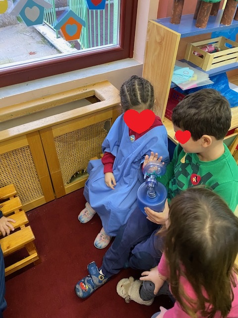 Στην συνέχεια και αφού μας εξήγησε ακριβώς τι είναι το κάθε εργαλείο και που το χρησιμοποιεί κάναμε μία αναπαράσταση του πως παίρνει αίμα στο εργαστήριο της και έπειτα έγιναν τα παιδιά μικροί γιατροί και το δοκίμασαν μεταξύ τους.
