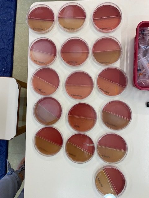 Δεν θα μπορούσε να λείπει από την δράση μας η πρόσληψη δείγματος για να ελέγξουμε τα μικρόβια που έχουμε στα χέρια μας και μάλιστα πήραμε δείγμα όχι μόνο από βρώμικα αλλά και από καθαρά χέρια προκειμένου να δούμε τις διαφορές.