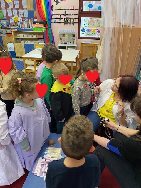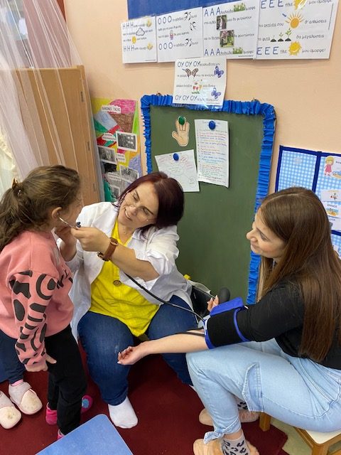 Επιπλέον, μας μίλησε για τις πρώτες βοήθειες και μας έφερε το εργαλείο που χορηγούν οξυγόνο καθώς επίσης μας εξήγησε και με ποιον τρόπο ακριβώς λειτουργεί. Ακόμη, μετρήσαμε την πίεσή μας και τα παιδιά άκουσαν τους χτύπους της καρδιάς μας.