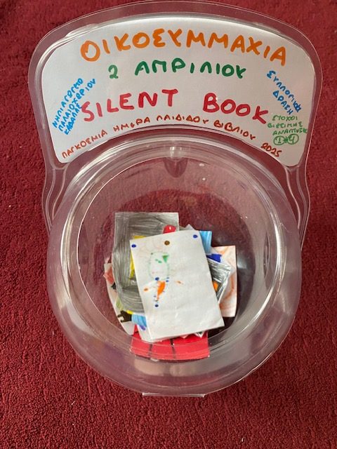 Επίσης, λάβαμε μέρος στην “Οικοσυμμαχία” μία συλλογική δράση μέσα από την οποία θα δημιουργηθεί ένα “silent book” μία ιστορία χωρίς λόγια. Προκειμένου να υλοποιηθεί η συγκεκριμένη δράση φέραμε ο καθένας το αγαπημένο του βιβλίο στο σχολείο και είπαμε λίγα λόγια γι’ αυτό στους φίλους μας. Έπειτα, τα τοποθετήσαμε το ένα επάνω στο άλλο και διαλέξαμε τυχαία ο καθένας από ένα. Χωριστήκαμε σε δυάδες και τριάδες και ξεκίνησε το ξεφύλλισμα και το “διάβασμα” των βιβλίων. Φυσικά, τα βιβλία πέρασαν από όλα τα χεριά καθώς τα ανταλλάσσαμε ο ένας μα τον άλλο. Στην συνέχεια, ζωγραφίσαμε όλοι σε ένα μικρό λευκό χαρτάκι αυτό που μας έκανε περισσότερο εντύπωση και τα τοποθετήσαμε σε ένα διάφανο κουτί, από το οποίο διαλέγαμε με κλειστά μάτια μία ζωγραφιά τυχαία για να ξεκινήσει η τυχαία σιωπηλή ιστορία μας.