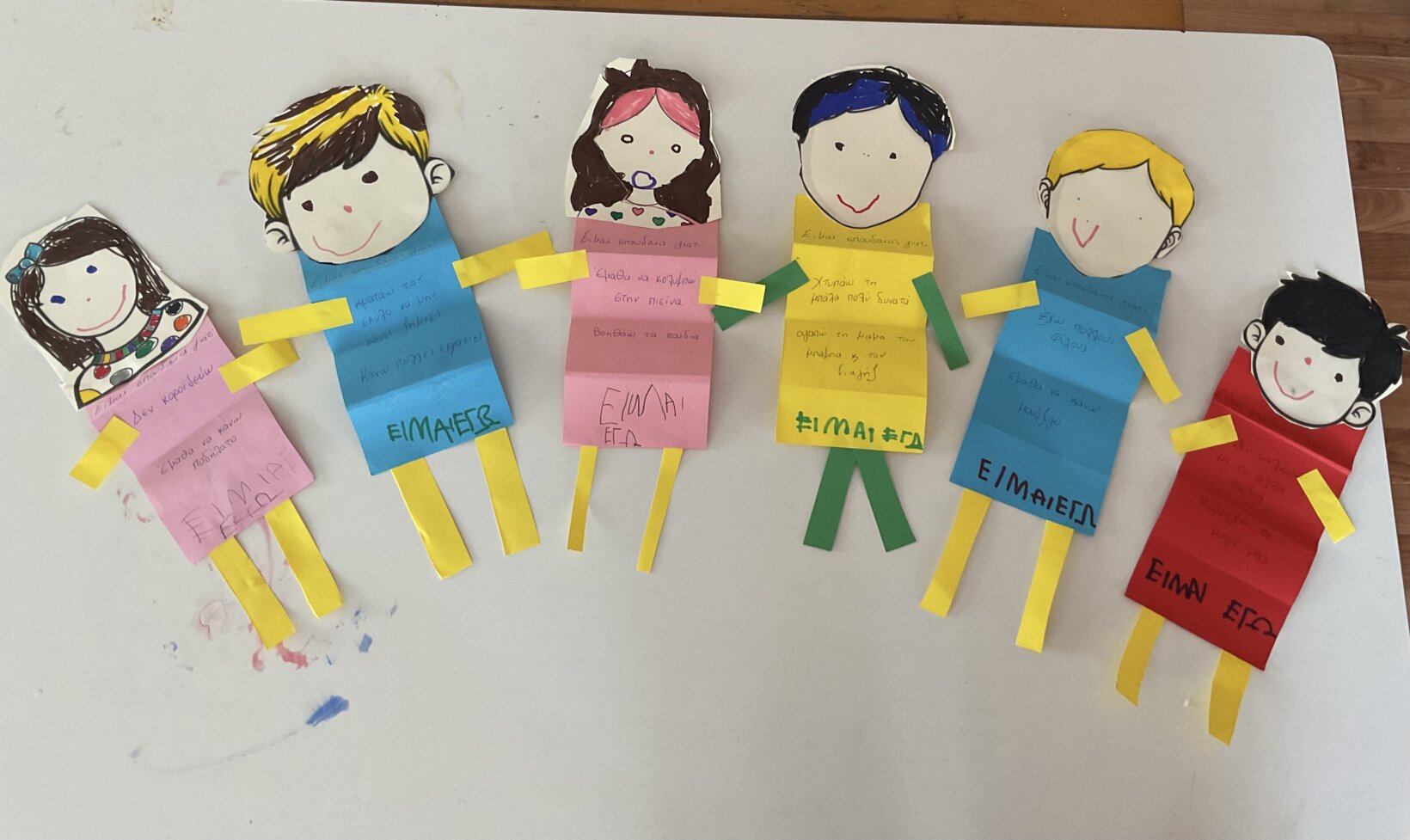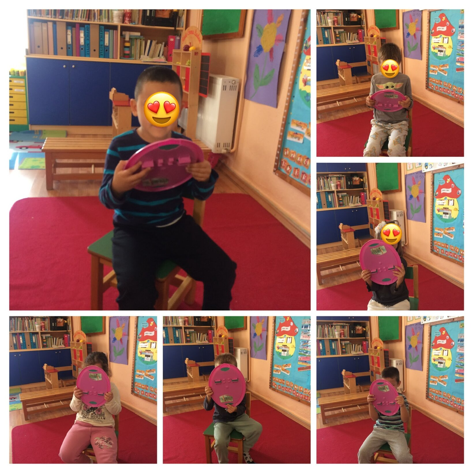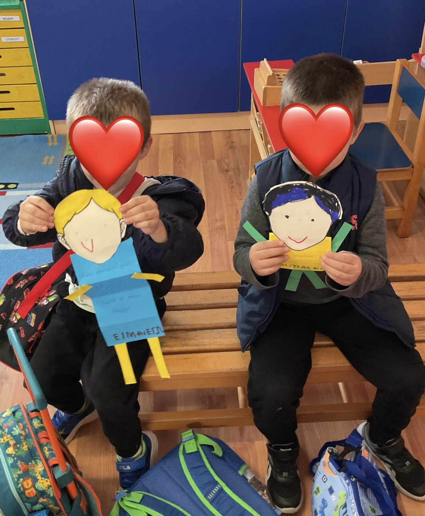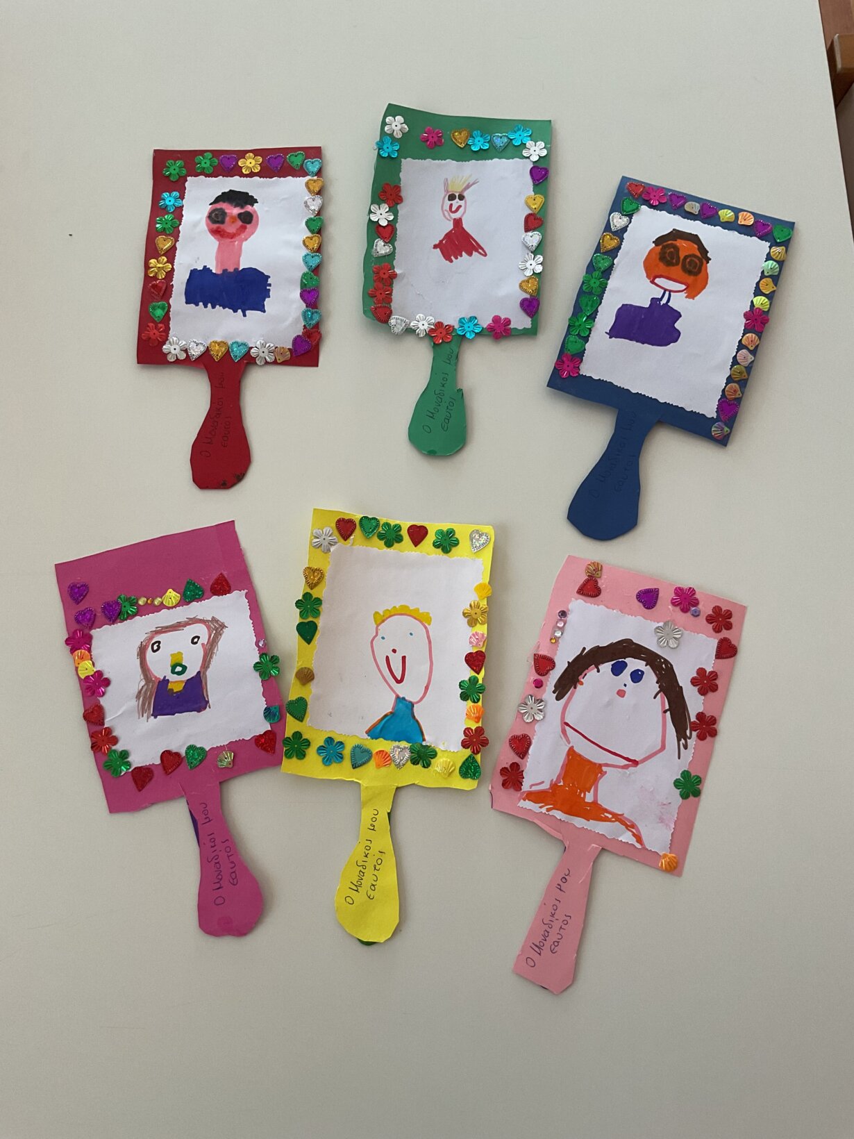 Τα παιδιά παρατηρούν  τον εαυτό τους  στον καθρέφτη, περιγράφουν αυτό που βλέπουν, φτιάχνουν την προσωπογραφία τους και γράφουν το μοναδικό τους όνομα.