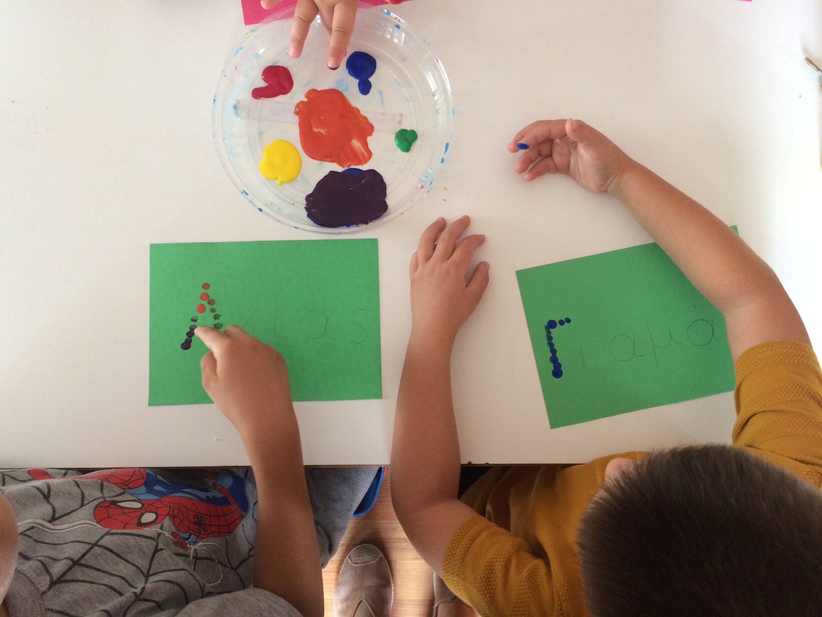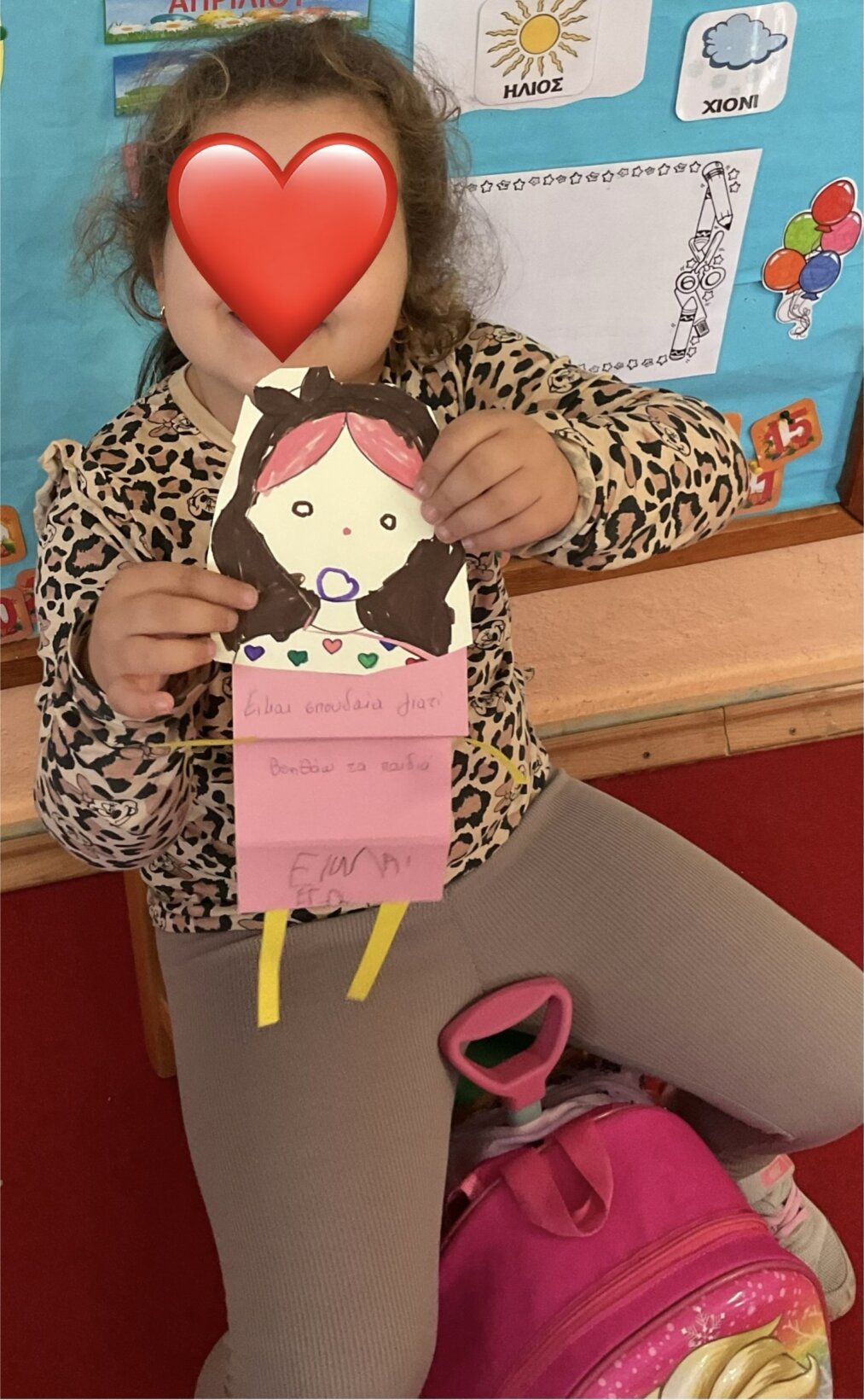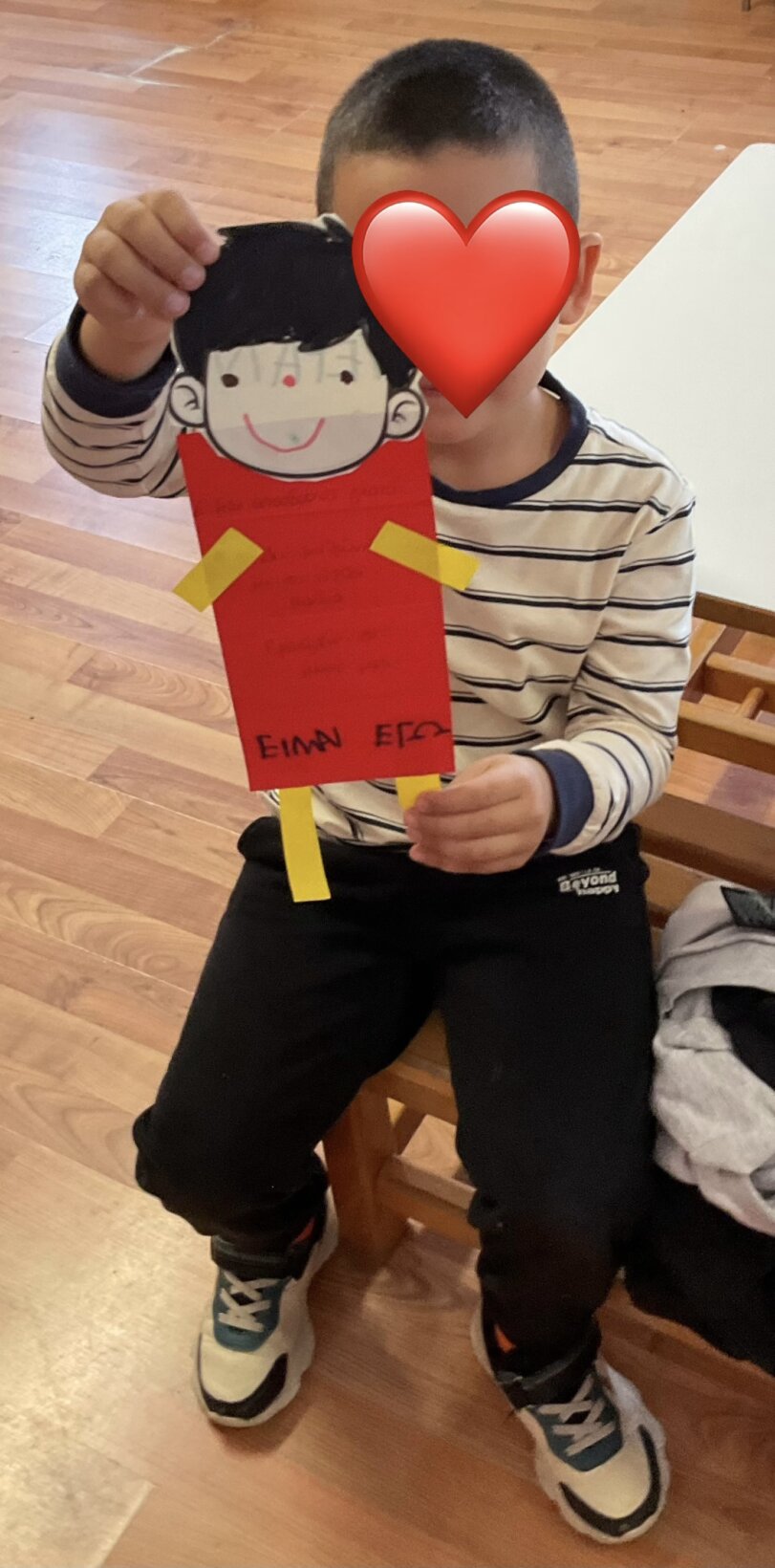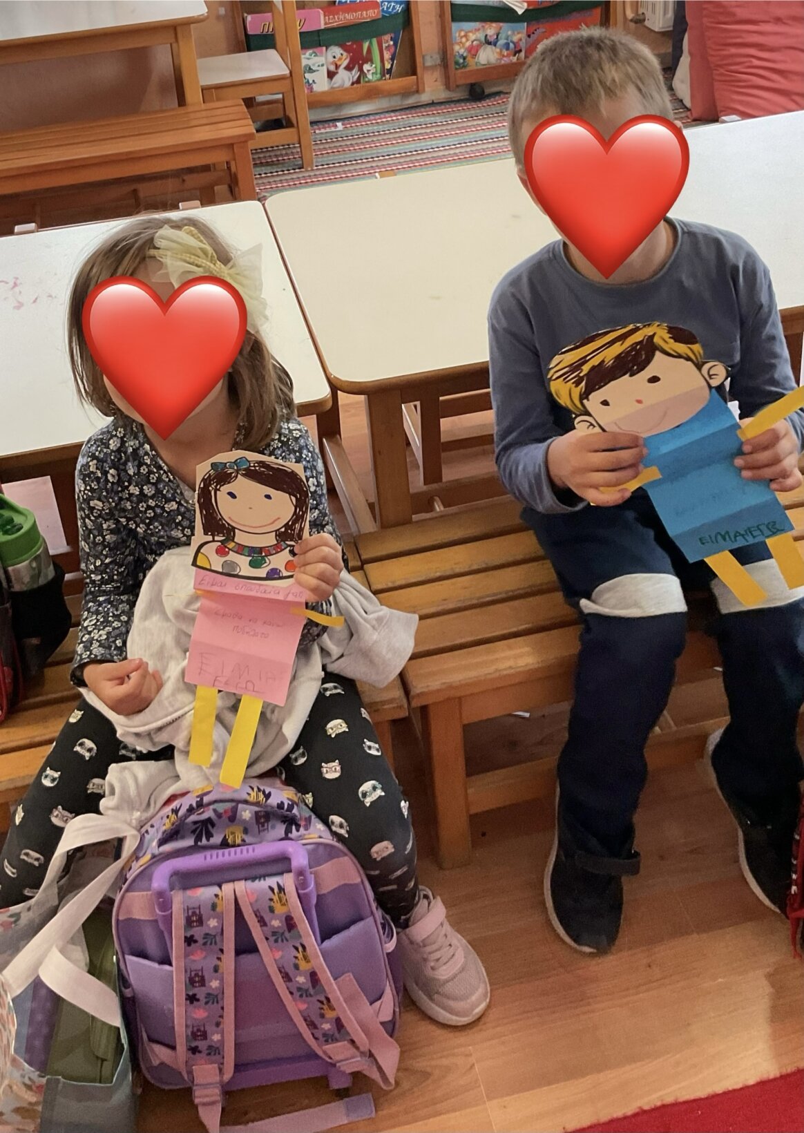 Τα παιδιά παρατηρούν  τον εαυτό τους  στον καθρέφτη, περιγράφουν αυτό που βλέπουν, φτιάχνουν την προσωπογραφία τους και γράφουν το μοναδικό τους όνομα.